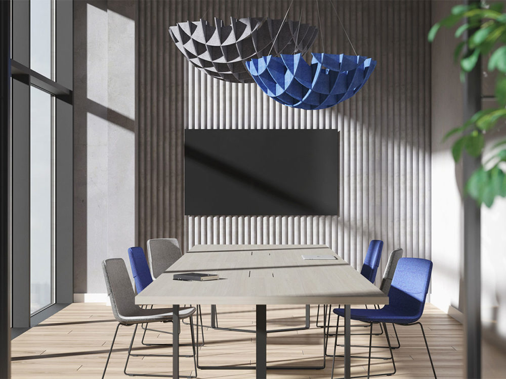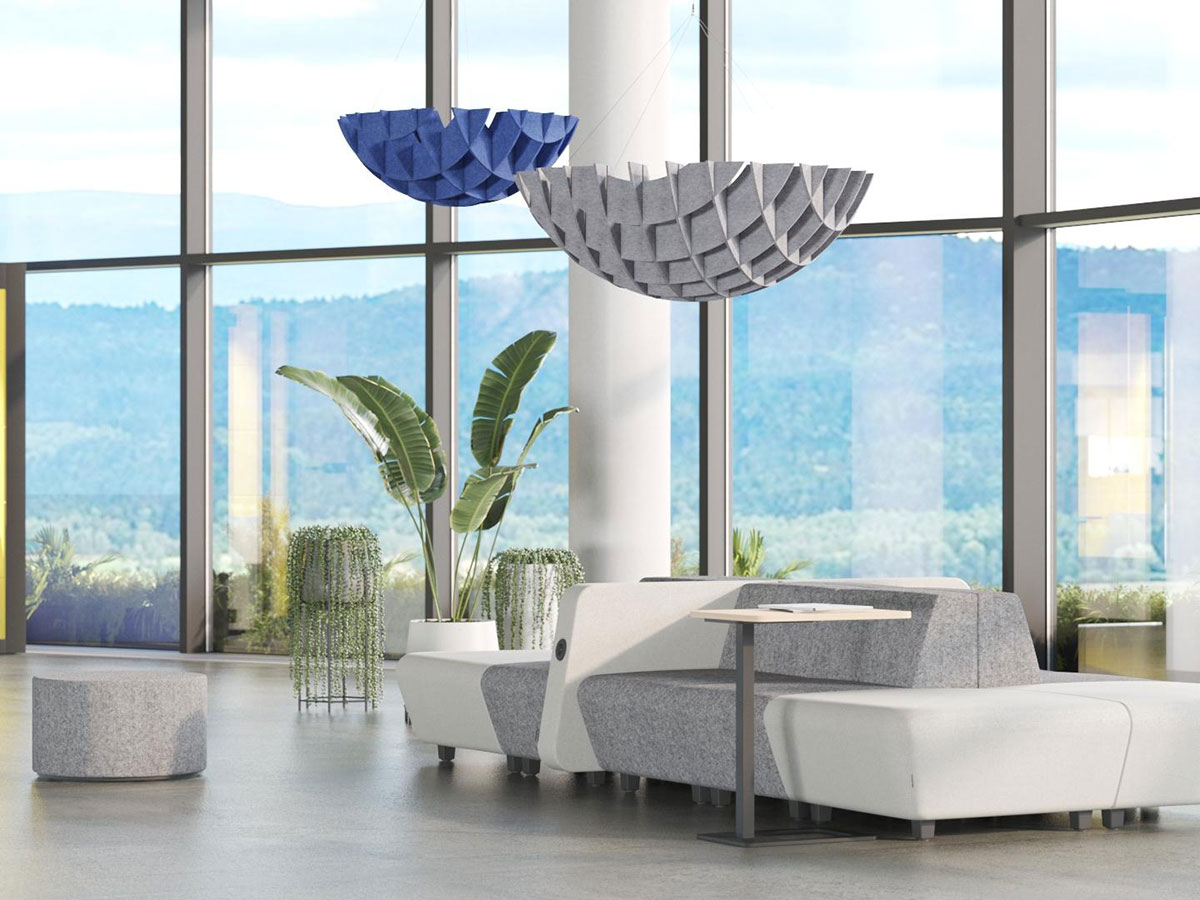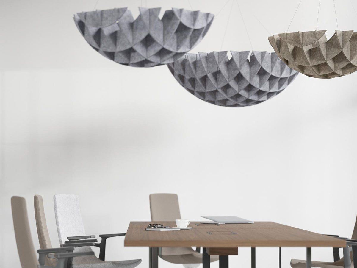 ACOUSTIC ARTWORK Clouds are a ceiling solution that improves office acoustics. Just like a shadow, this acoustic cloud is always here to efficiently absorb ambient sounds. With the help of these acoustic elements, you will be able create an acoustically comfortable environment for both work and relaxation.