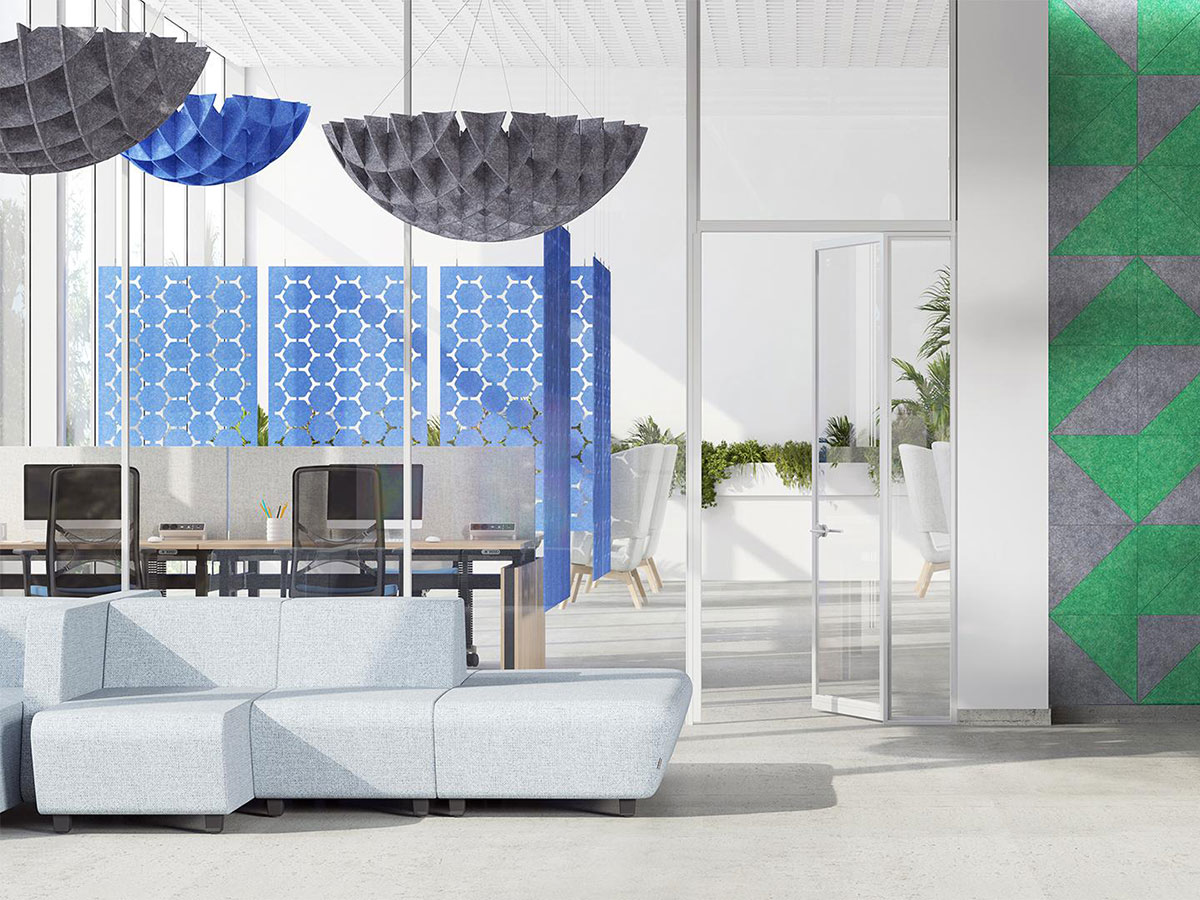 ACOUSTIC ARTWORK product range includes acoustic products made from PET felt and designed to improve room acoustics. In pursuit of this goal, creative compositions are born for the modern office where employee well-being is a priority.