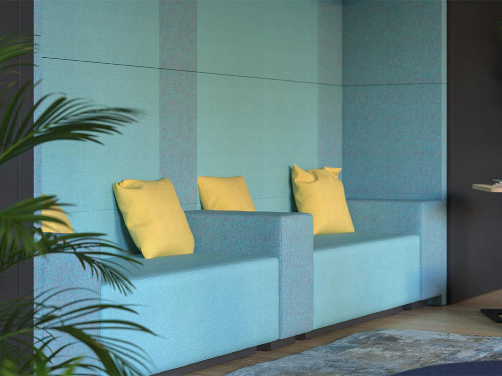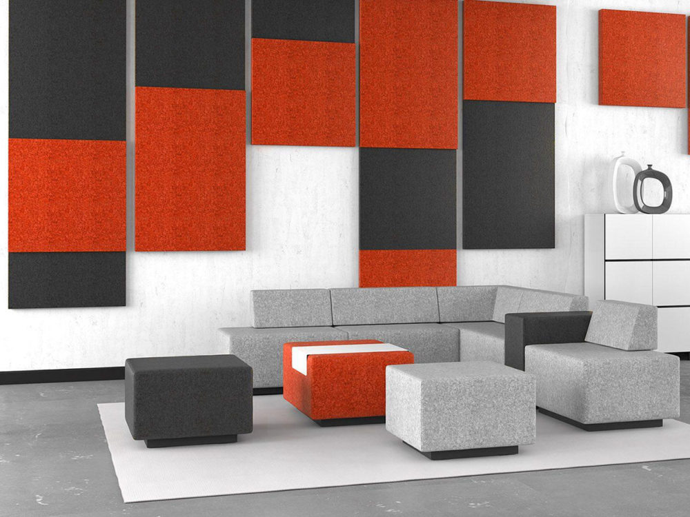 Implement your creative ideas by using acoustic panels of three different sizes and two different depths. You can also choose from our wide range of fabrics and a variety of colour options.