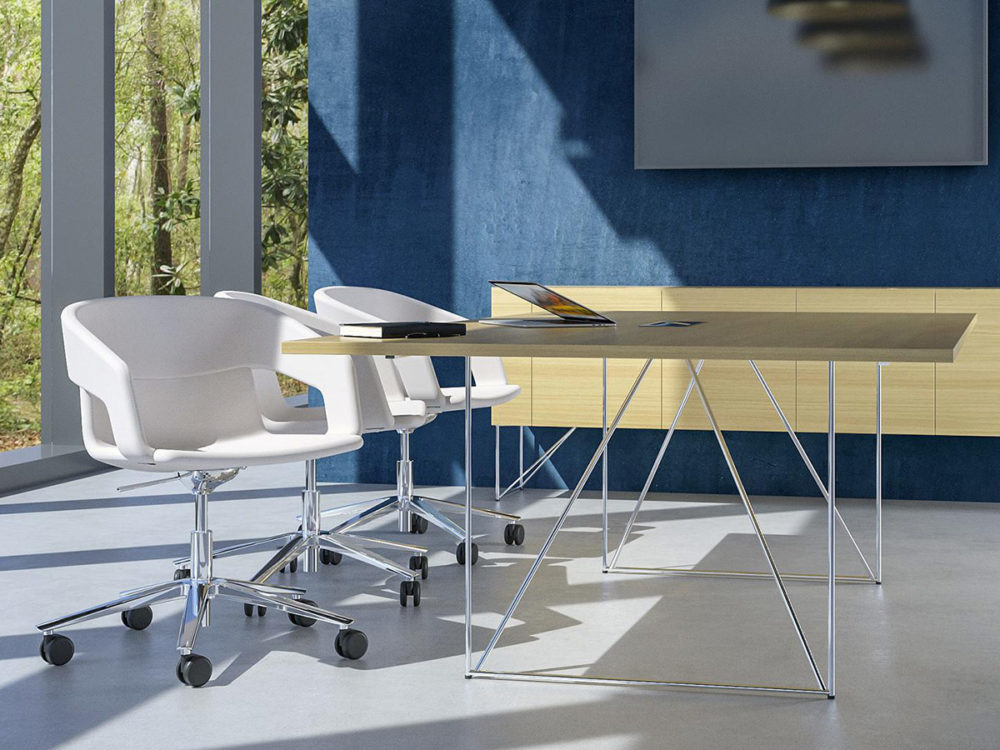 An exceptional feature of AIR Collection is thin metal legs that convey a sense of lightness and at the same time ensure durability and stability. Minimalist AIR designs, thought through solutions, combinations of different textures and colors – all this provides more creative freedom for architects who design office spaces. AIR meeting tables feature a round tabletop designed for a team of six people or a rectangular tabletop ideal for eight people. The AIR furniture collection was designed by Gediminas Juška.Furniture that appears as if floating in thin air