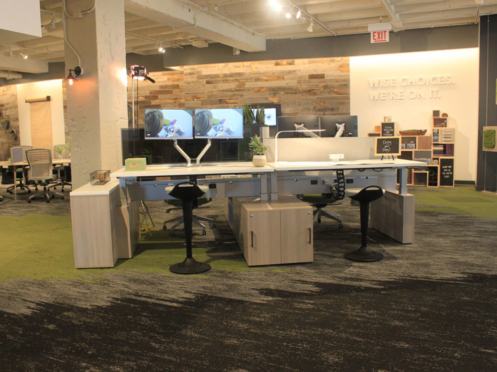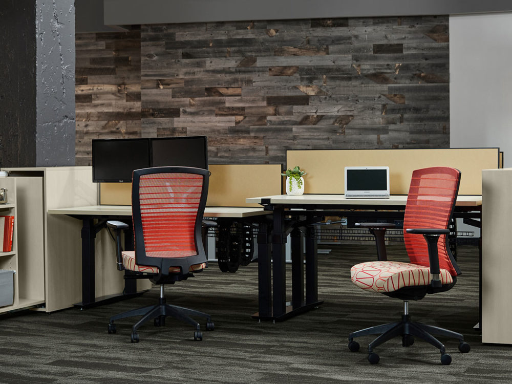 Aloft is a unique height-adjustable benching solution designed for a modern open space plan. This product platform combines the features and functionality of a bench system with the ergonomic and documented health benefits of standing while working.