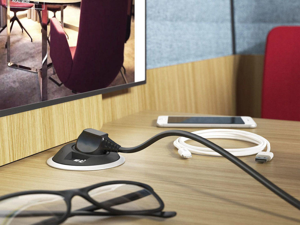 The seating unit can accommodate a monitor screen for convenient presentation of information during business meetings. The table is equipped with a power socket with integrated USB type A and C connectors for any work devices to make sure you never run out of energy.