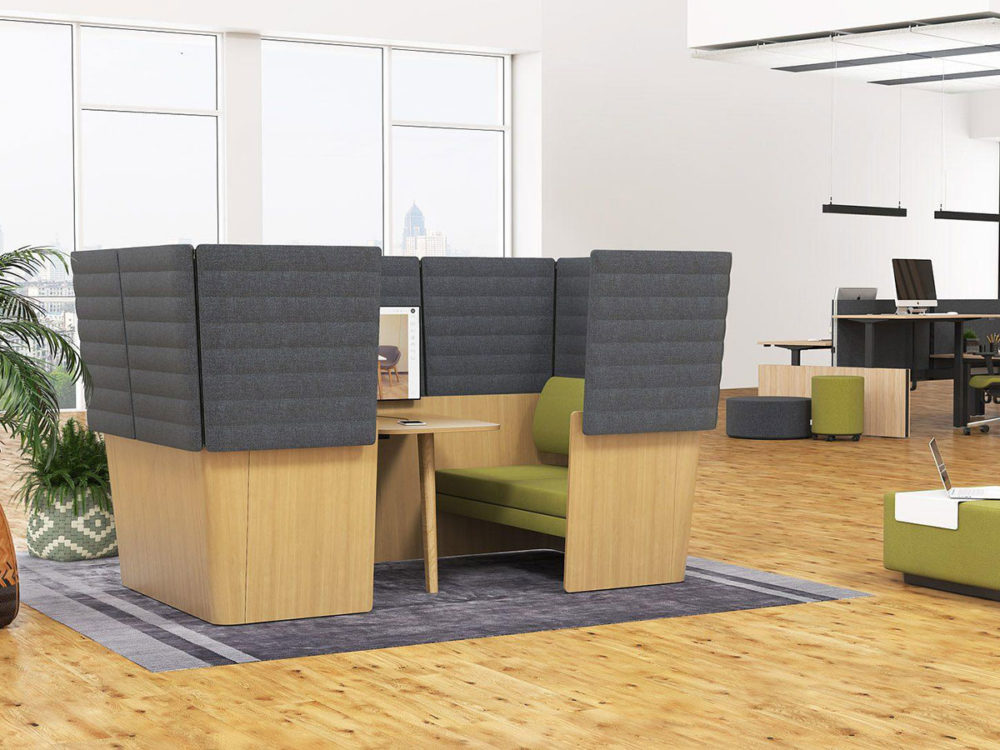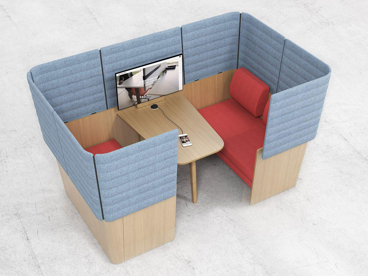 ARCIPELAGO Wood lounge furniture is ideal for creating an enclosed “room within a room” in open-plan offices. It serves as a meeting and work space where you can isolate yourself from ambient noise.