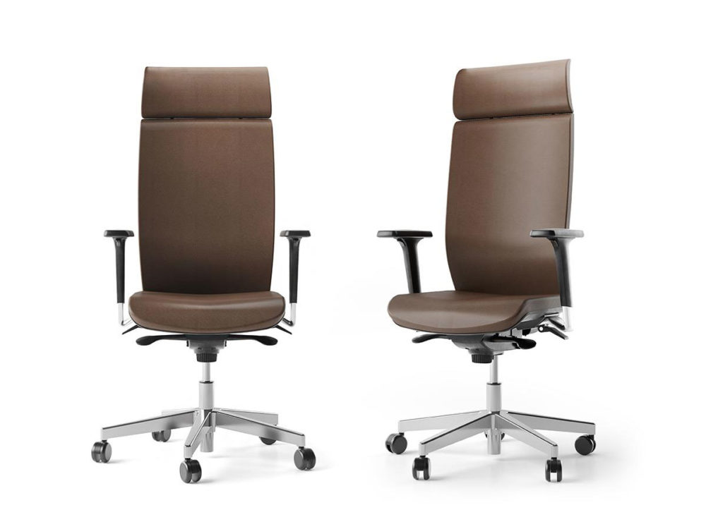 In comparison with task chairs, AURA executive chairs have one more additional detail: fixed molded polyurethane head support. It not only makes the chair more stylish and creates a more elegant and sophisticated image, but also has a very important function: the headrest ensures greater comfort, because a good support for your head leads to less tension in your neck.Good aura at work is essential just like air