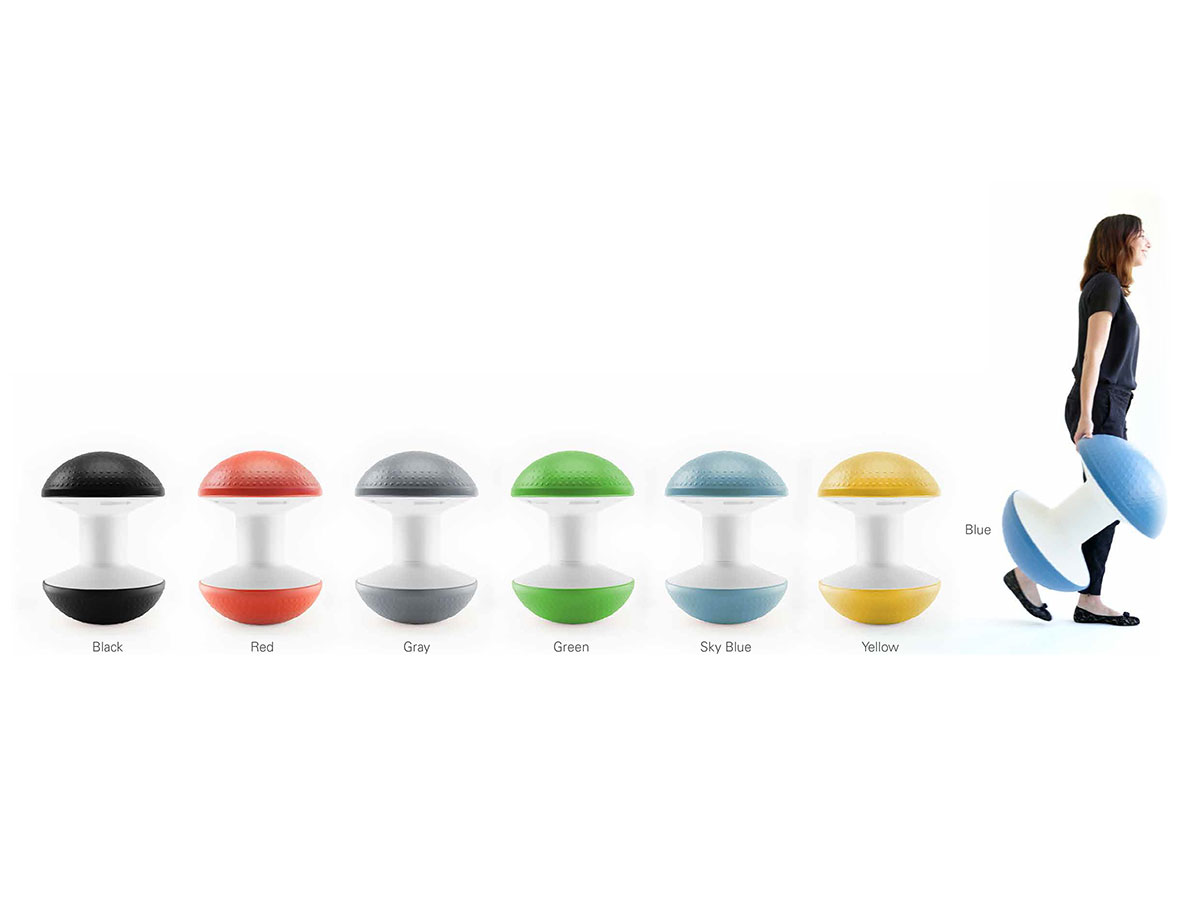 Ballo combines functional, innovative design with the playfulness of an exercise ball. Its counterweighted base helps Ballo remain upright for stable movement and convenient storage. The result is a multipurpose stool that allows users to move with ease.Lightweight Flexibility