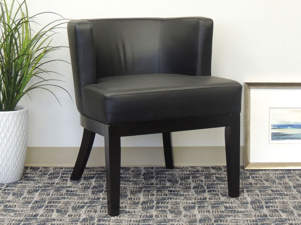 Finding a collection of exceptional waiting room furniture is almost impossible, but this retro style guest chair from the Bowery Collection is here to solve all your problems. Add value to your office waiting room with this retro style guest chair, offering a stylish mixture of exceptional quality fabric and wood. With tapering wooden legs and a black vinyl upholstery, this chair exudes aesthetic perfection. This guest chair is crafted from high quality materials, allowing longevity and reliability. Adorn your office waiting room furniture with this stylish retro style guest chair for better aesthetic value, and impress your visitors.