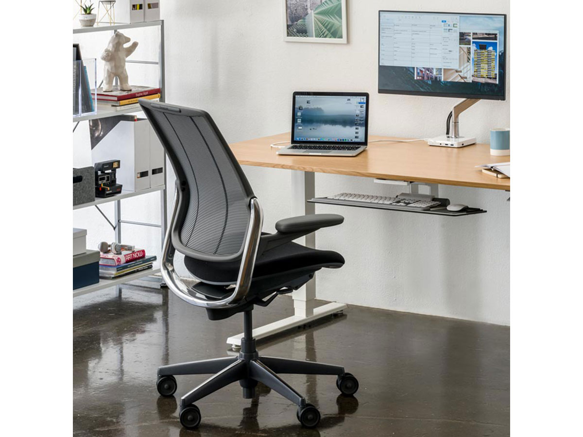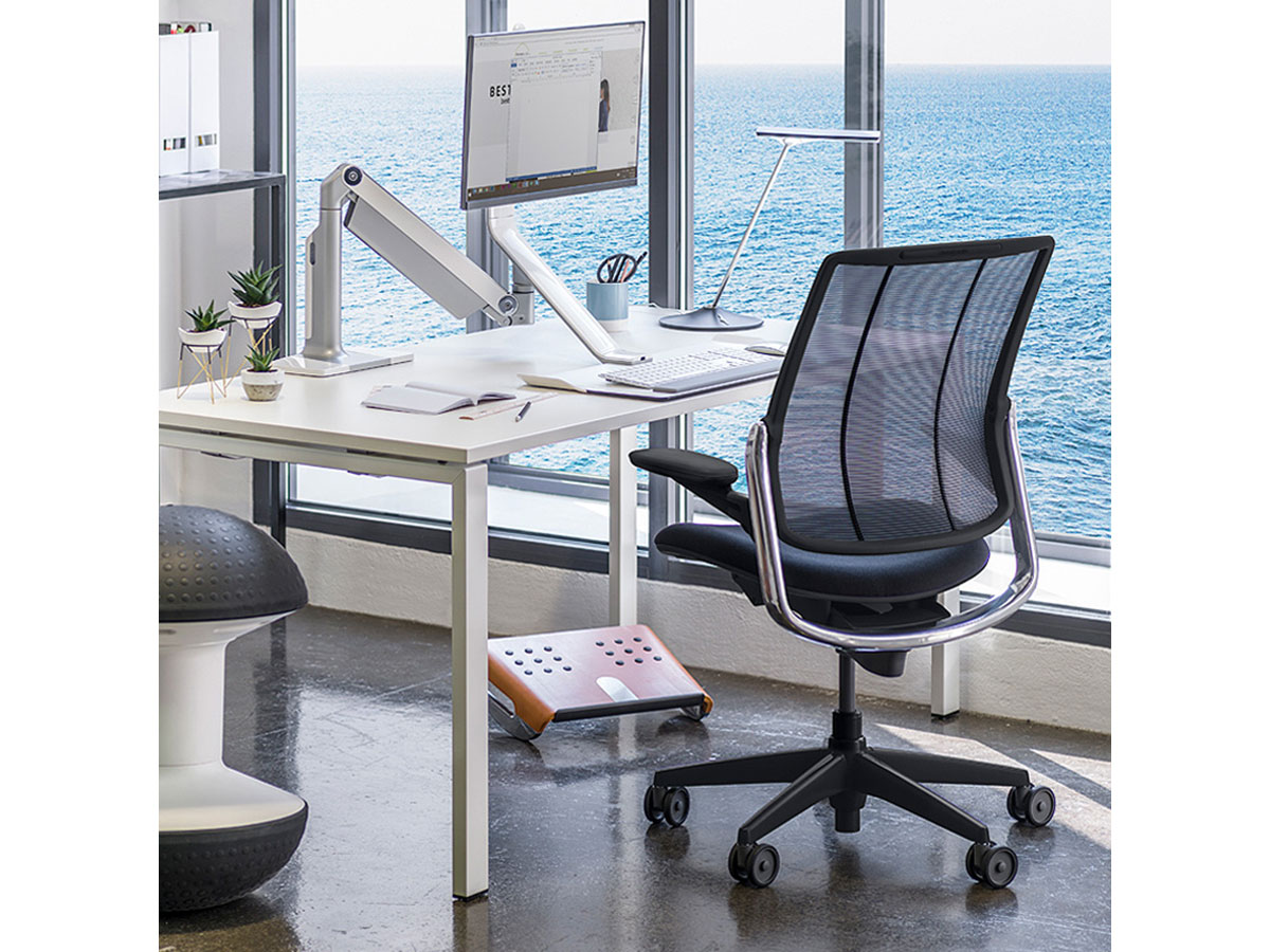 To ensure every person who sits in Diffrient Smart would have perfect lumbar support, Diffrient created a tri-panel mesh backrest to automatically adapt to the user’s needs. Eliminating the need for complicated adjustments and external lumbar devices, Diffrient Smart uses Form-Sensing Mesh technology for easy, ongoing comfort.The Diffrient Smart chair is an intelligent mesh task chair with a striking linear aesthetic that complements any environment. Engineered to provide automatic lumbar support for every user, as well as simplicity and ease of use, Diffrient Smart offers comfort, style and flexibility. Diffrient Smart was created by designer Niels Diffrient and, like Liberty and Diffrient World chairs, uses revolutionary Form-Sensing Mesh Technology and mechanism-free recline for perfect support for every user.
