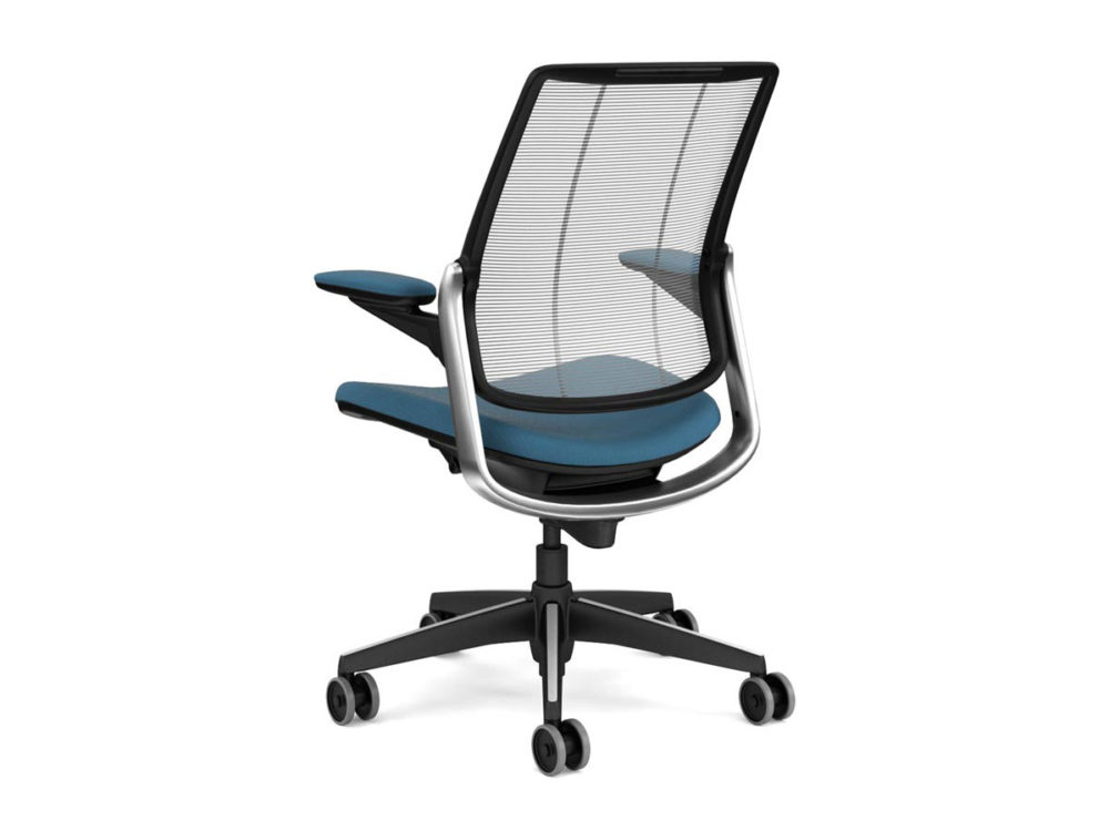 Featuring weight-sensitive, mechanism-free recline, Smart automatically adjusts to the body weight of each sitter to provide perfect recline support. Using the laws of physics, all the user has to do is sit and the chair will provide the correct amount of tension for their shape.