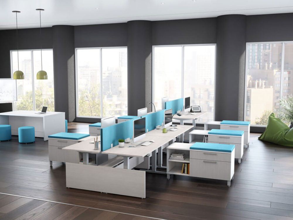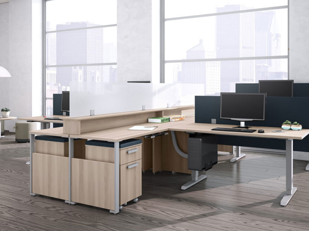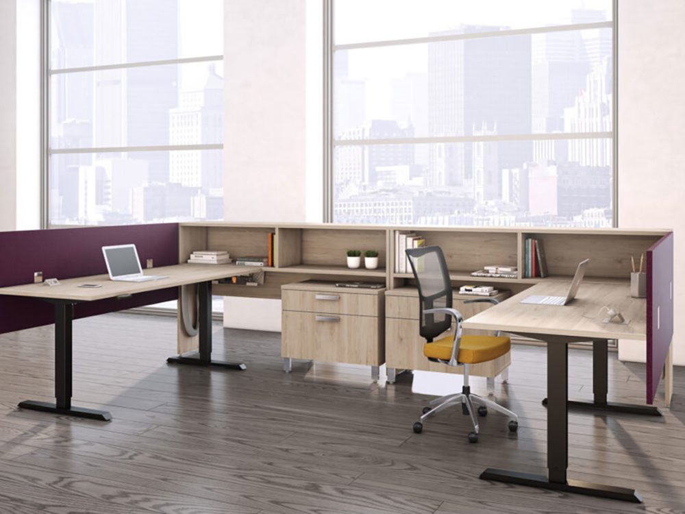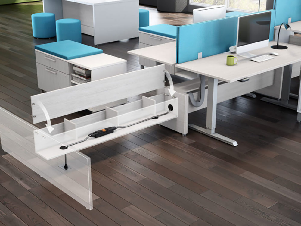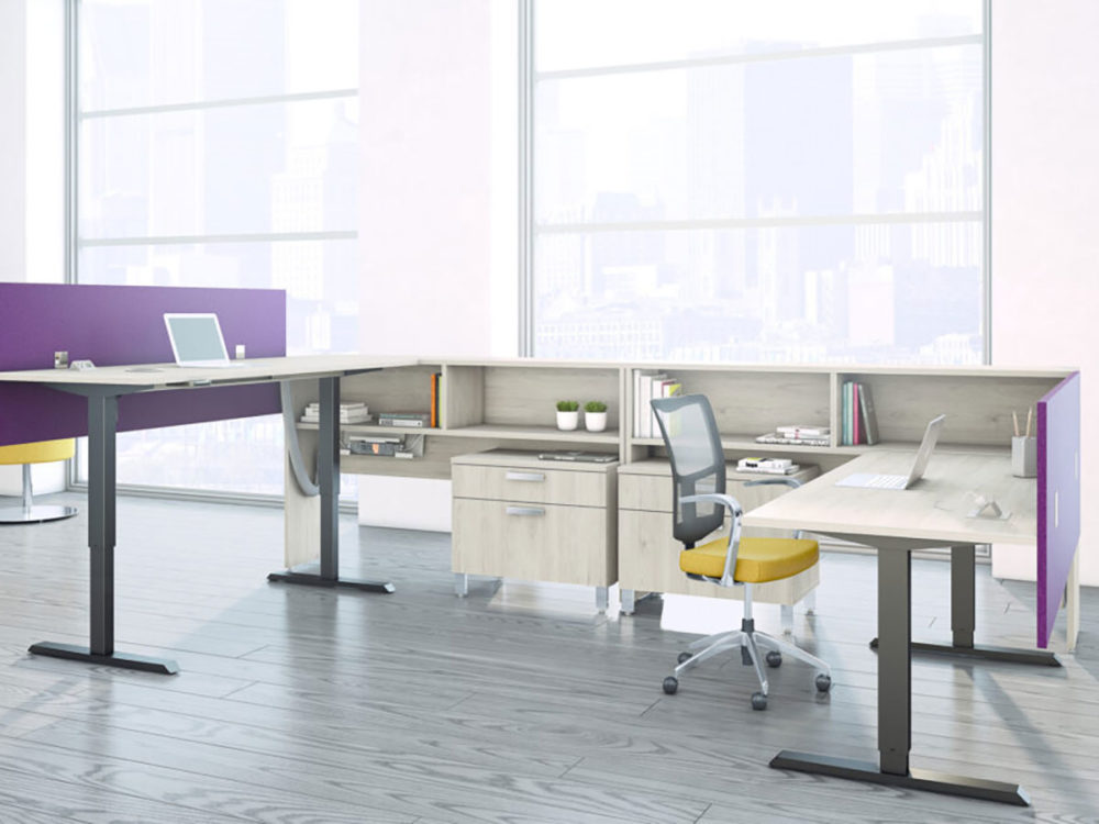 The height of each surface can be adjusted independently, which means that each individual can assume the posture that meets their personal needs. In addition to ensuring privacy for each user, Elevation desks meet technological needs by providing wire management solutions.Ergonomic, Quick And Quiet
