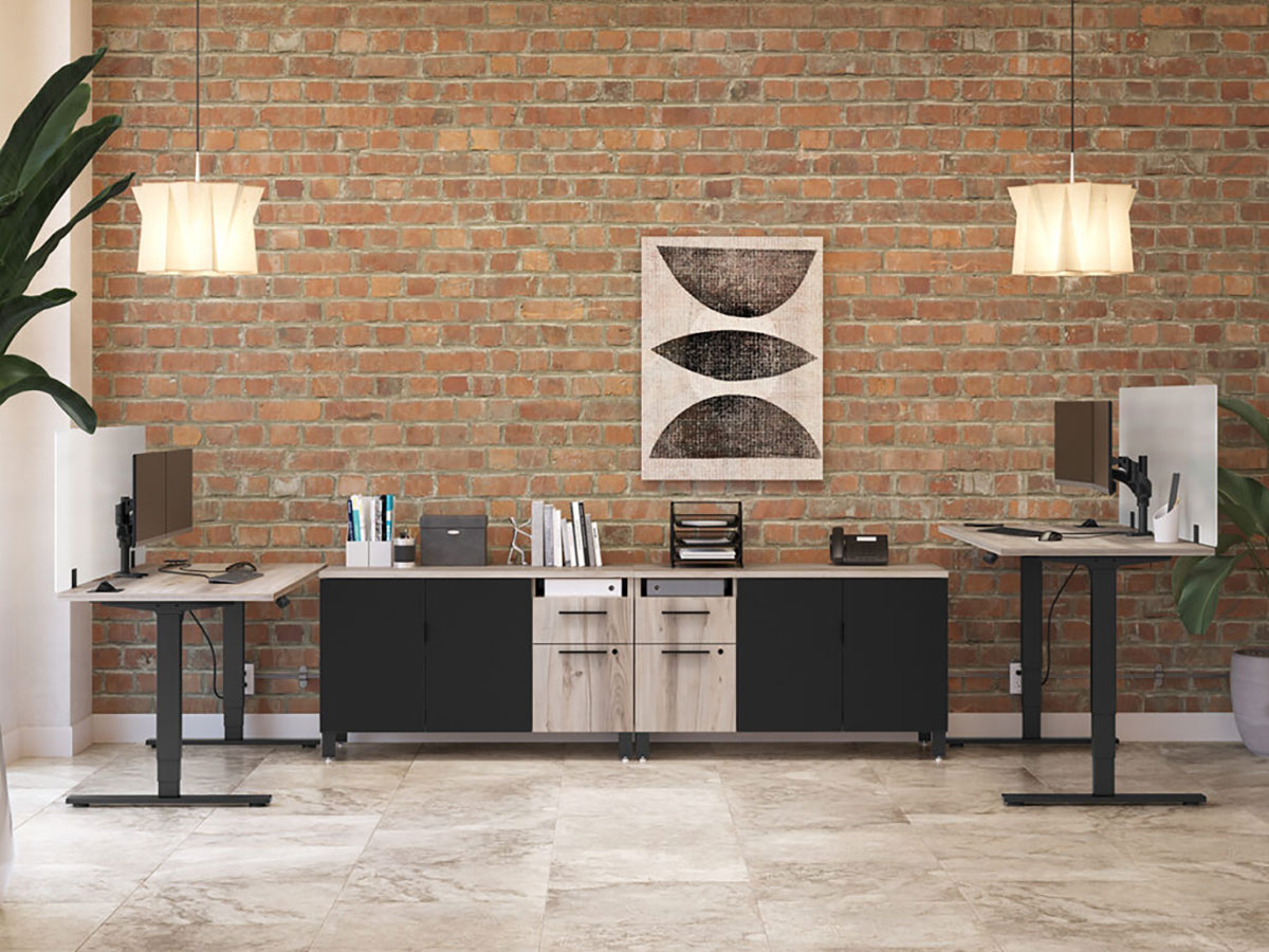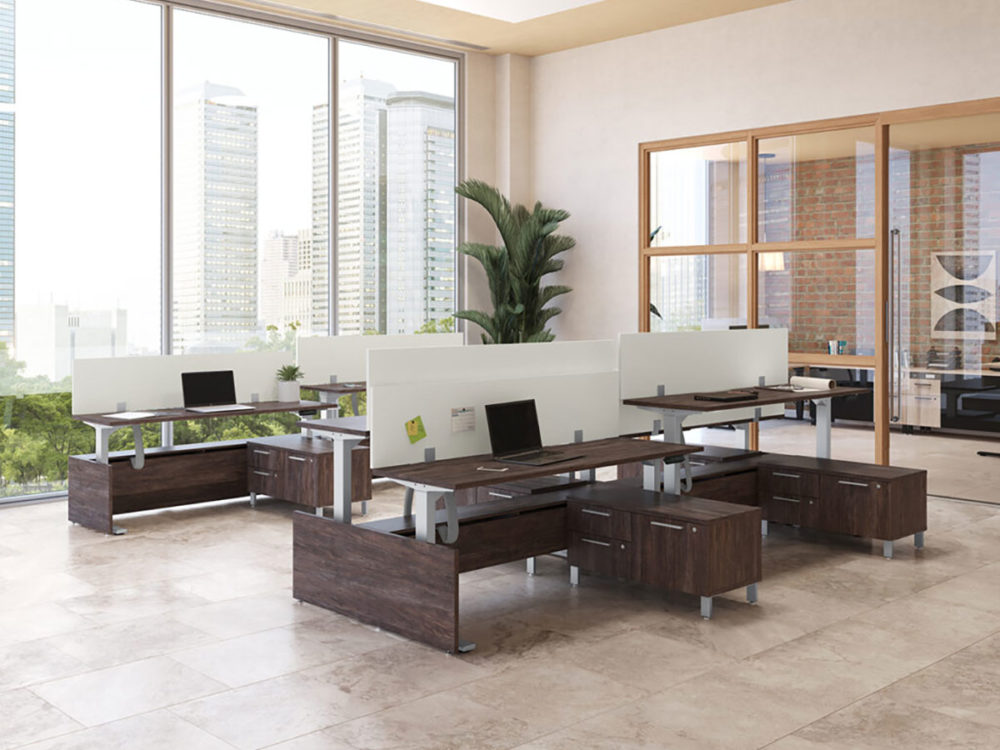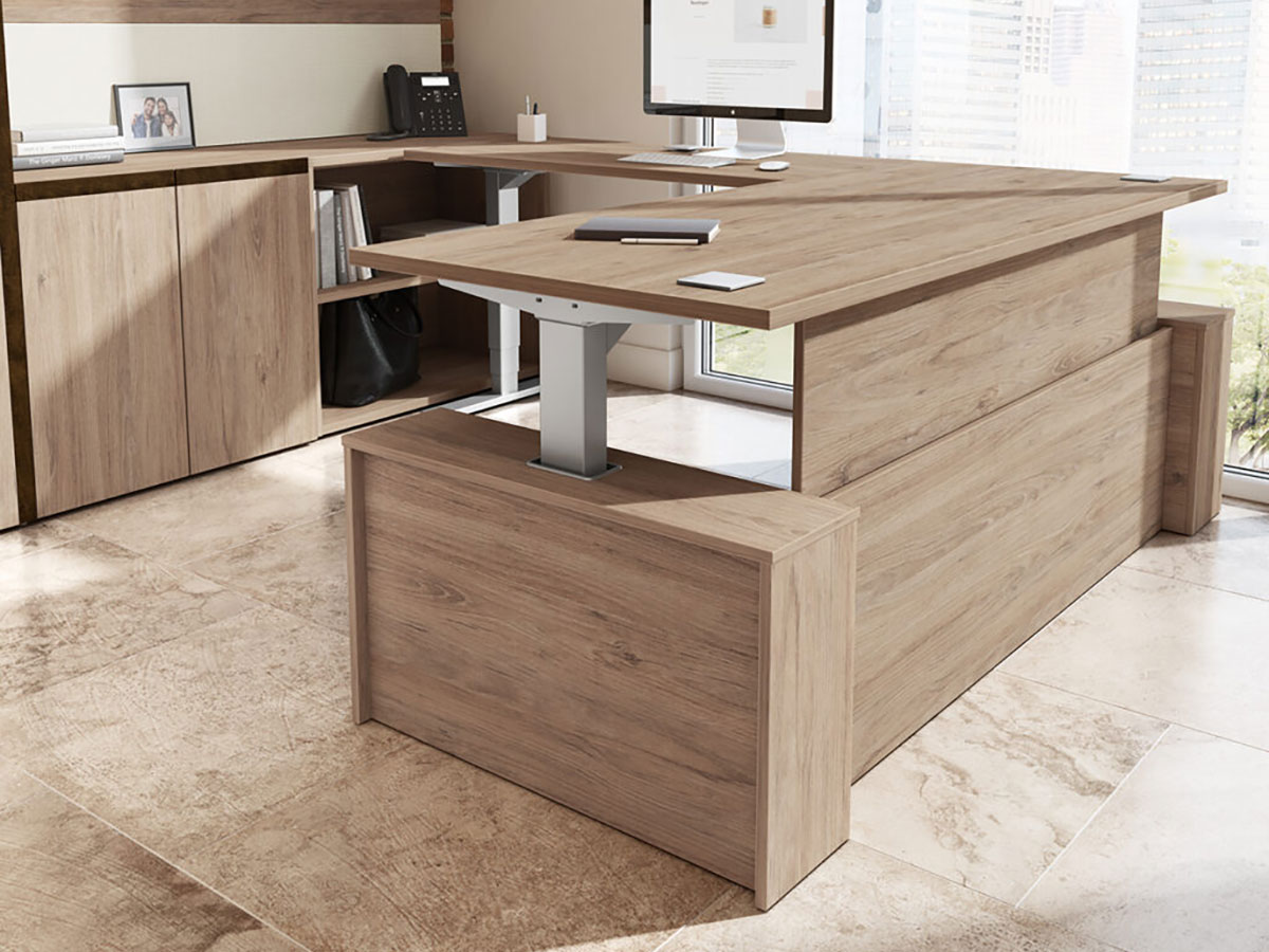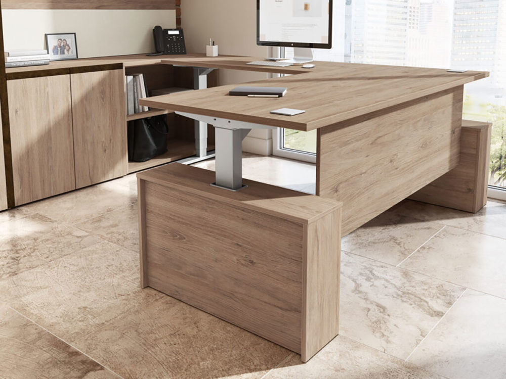 Each surface is equipped with an electrical control panel and can be raised or lowered between seated and standing positions in a matter of seconds.