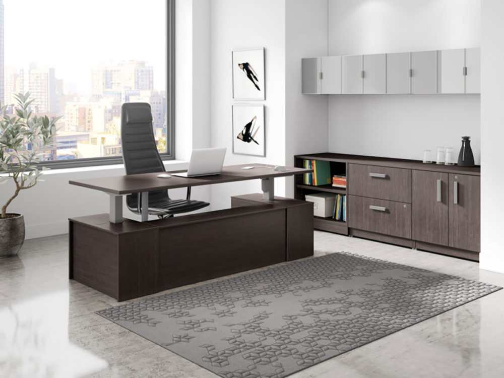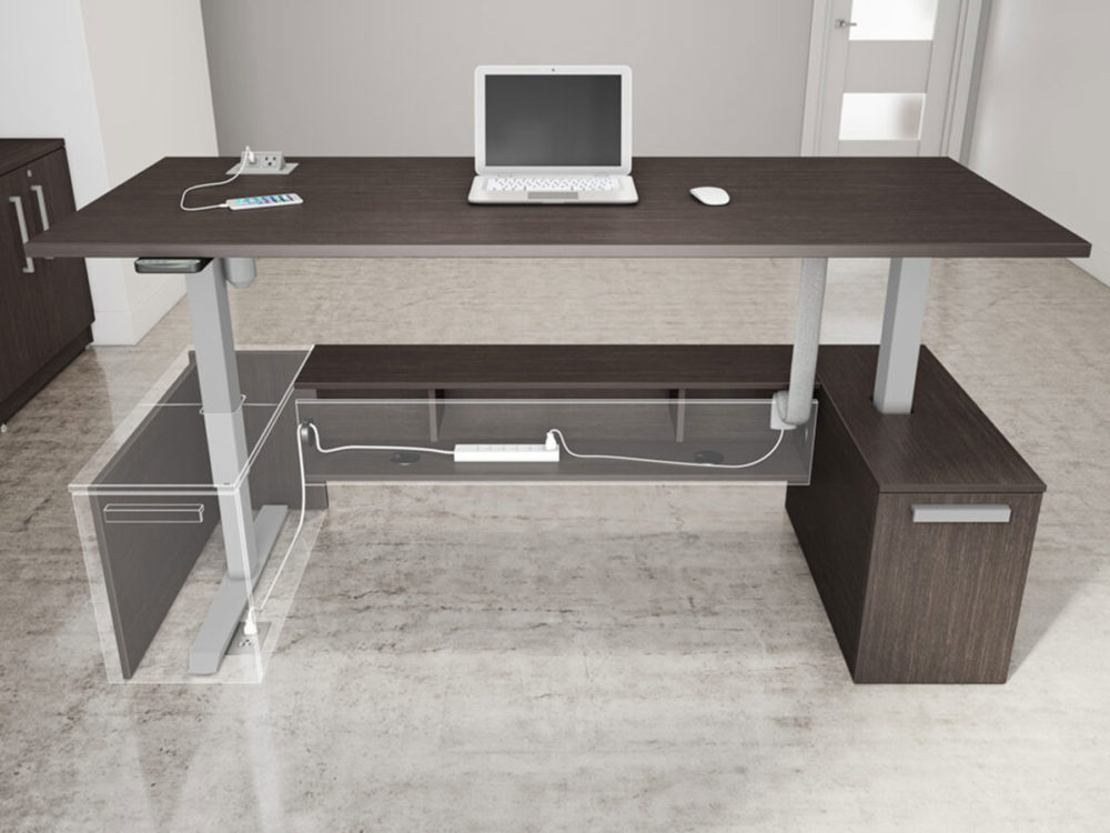 Elevation is the ergonomic solution for working in comfort and flexibility. Each surface is equipped with an electrical control panel and can be raised or lowered between seated and standing positions in a matter of seconds. The result? A healthier, more productive work environment.