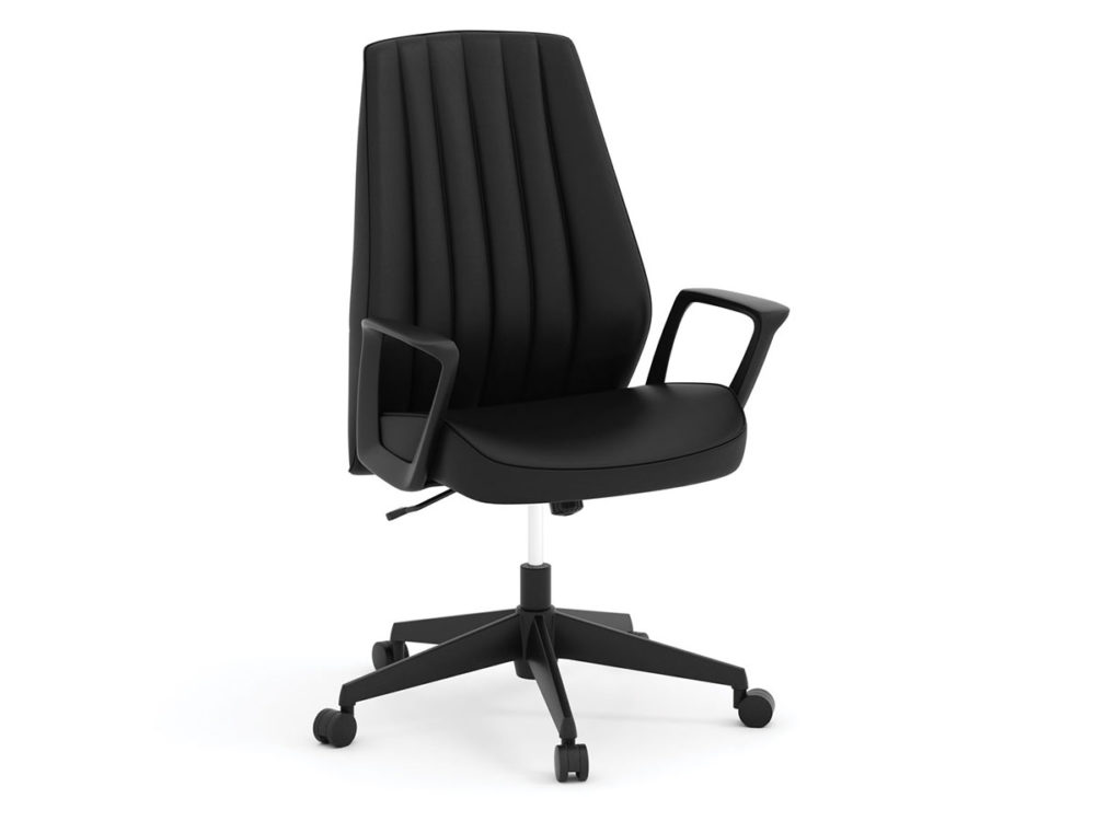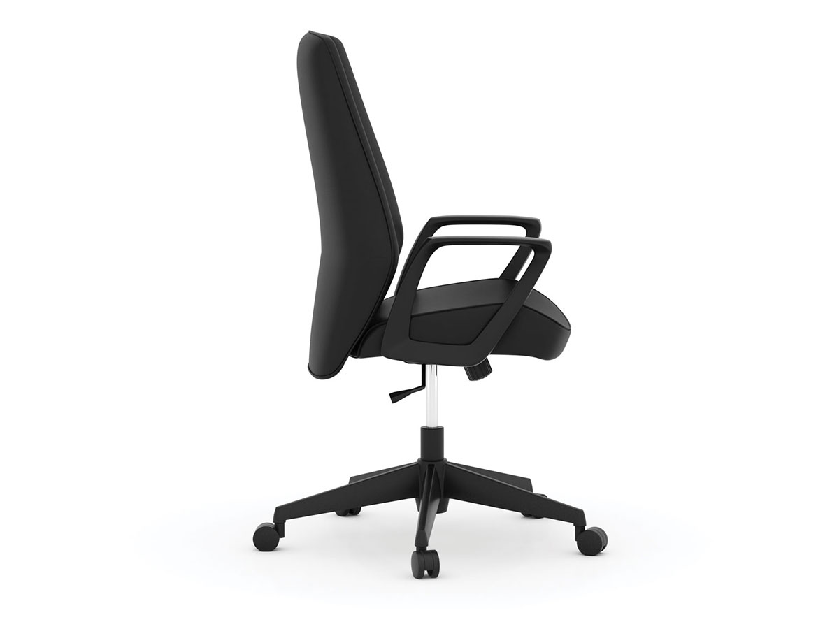 When in Rome… the high back executive chair is made of top grain black leather with uniquely designed armrests. Adjust your seat height and swivel 360 degrees while you contemplete the work ahead. You’ll feel like a leader of your domain in this chair.