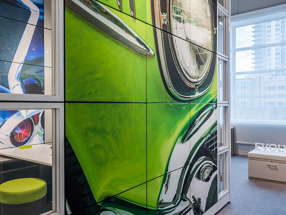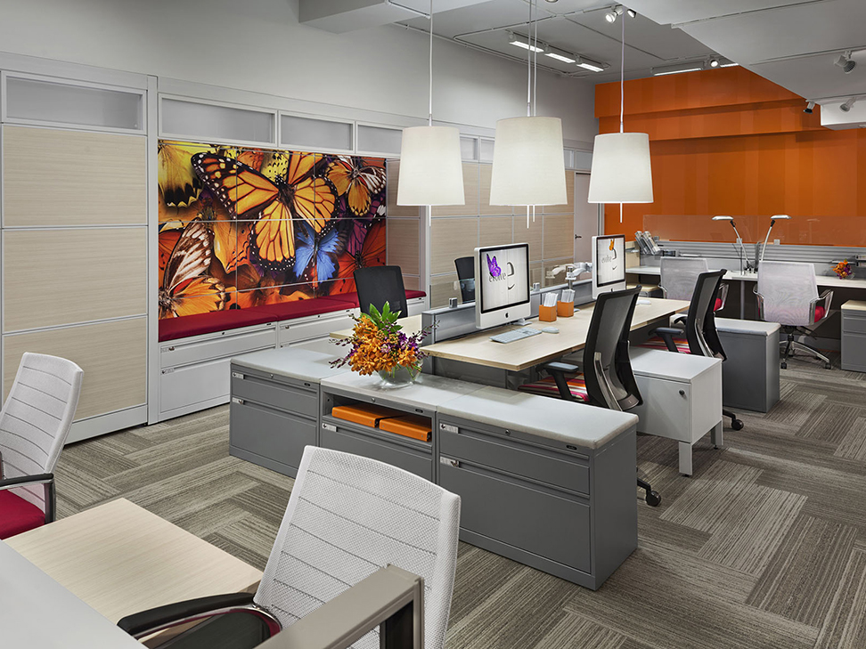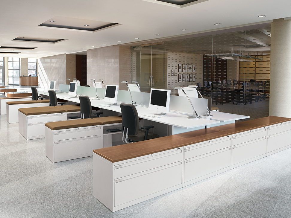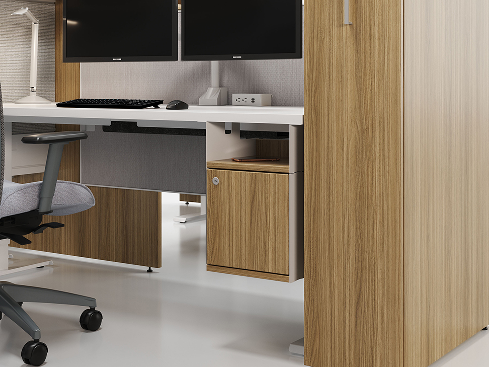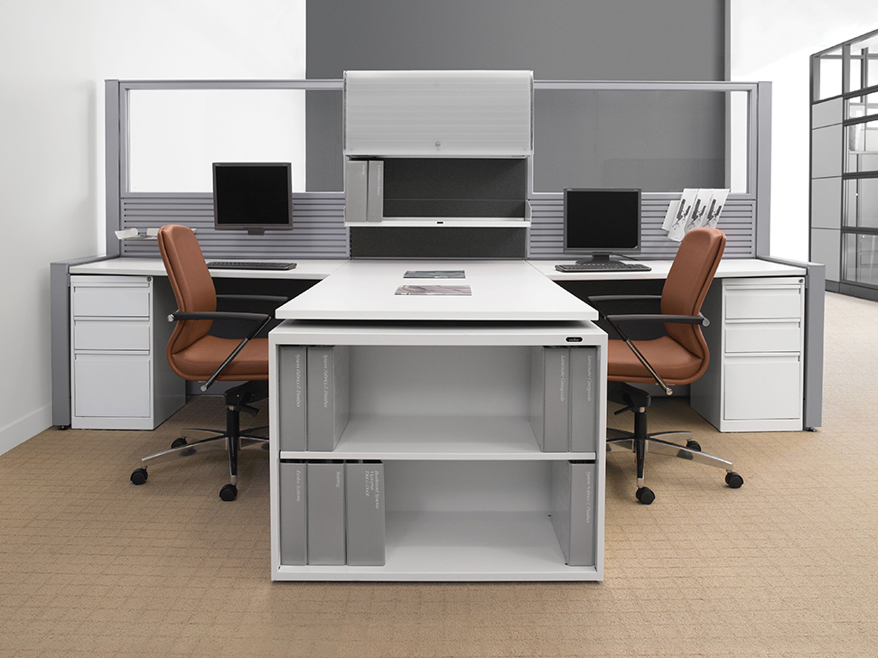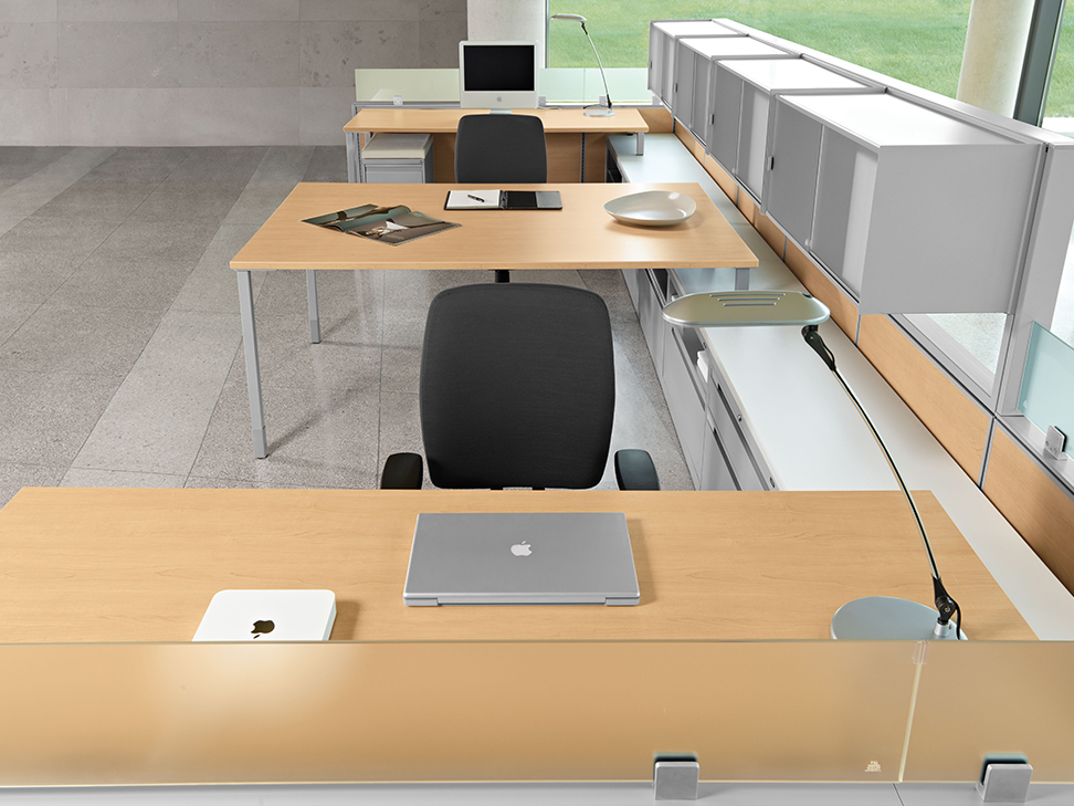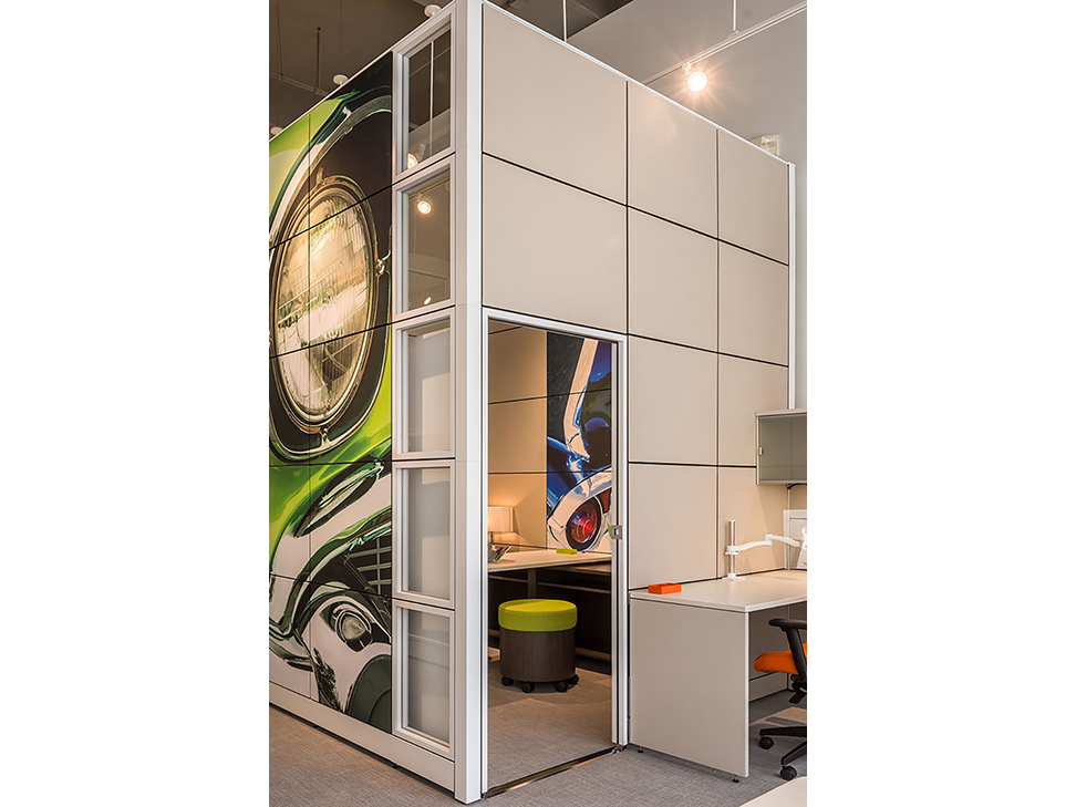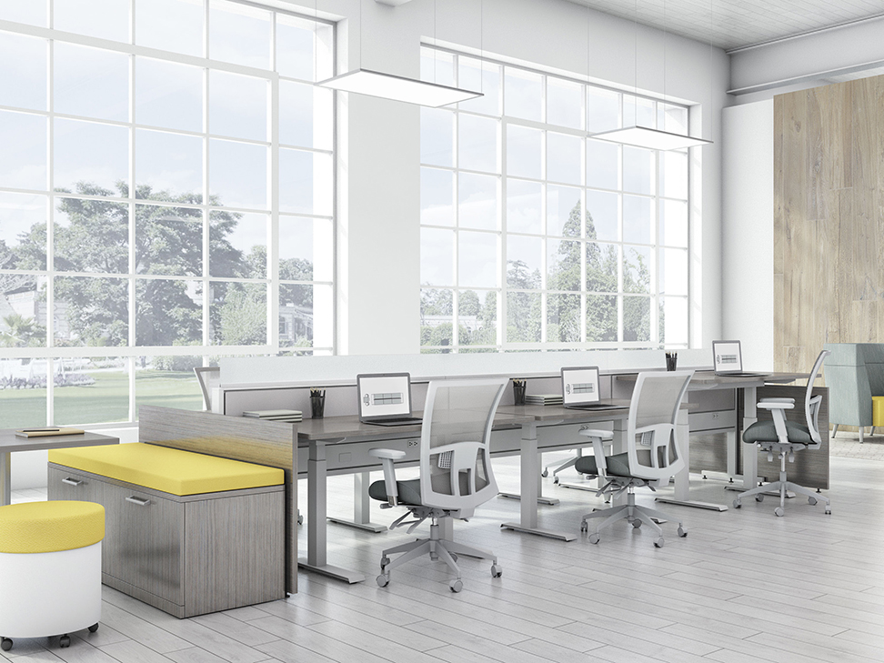 Evolve provides the backbone to building complete office landscapes. Stackable panels shape space without relying on existing walls. Fabric, laminate, metal and glass finish options support varying privacy, acoustical and aesthetic requirements.