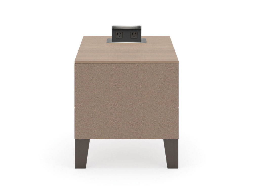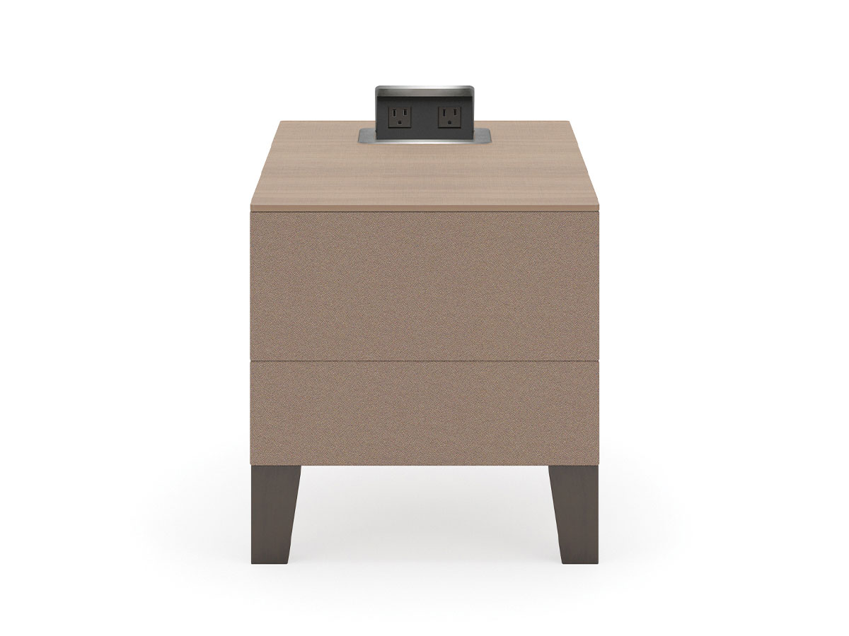 - Tables feature high pressure laminate tops with stunning upholstered panels