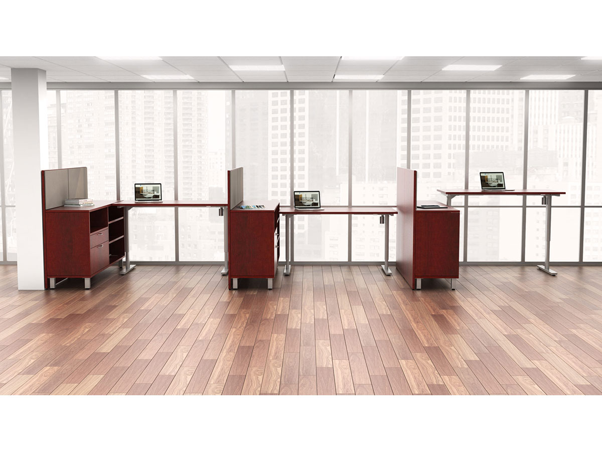 Ergonomic experts everywhere agree the option of a height adjustable can make individuals more productive and efficient over long periods. Giving your staff the tools they need to be successful includes providing a comfortable and creative work environment. Our height adjustable tables are available in a number of configurations and hundreds of sizes. In addition height adjustable mechanisms can be fully integrated into our customized program.