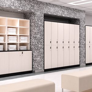LOCKER ROOM: The Locker room is perhaps one of the most important rooms in any athletic facility. Locker rooms provide your patrons a place to catch their breath after a long workout or regroup after a tough game. Our extensive line of finishes lock and accessory options, make it simple to design a luxurious locker room that is secure, functional and aesthetically pleasing.
