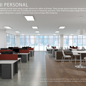 MINI PERSONAL: Our mini pedestals provide space-saving storage solutions for offices of all kinds. These storage options have been designed to fit under, beside or behind the users work area, providing easy access to frequently used items. Their small and compact design allows you to maximize space making them a popular choice for both small and large office footprints.