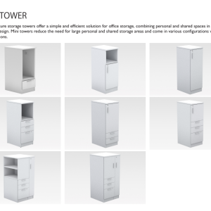 MINI TOWER: Our miniature storage towers offer a simple and efficient solution for office storage, combining personal and shared spaces in a