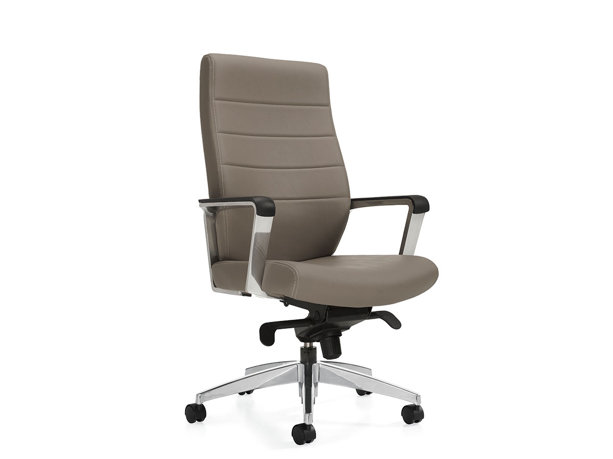 As the workplace continues to change, meetings and conferences can still be long days with demanding agendas. Luray provides ample proportions and full back support in an upholstered seating series to keep participants at their best. The polished aluminum arm can be specified with a urethane or wood top cap. Contrasting stitching is also available to complement a wide selection textiles and quality leather coverings.