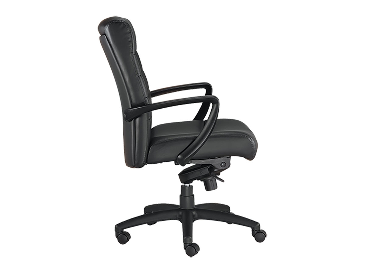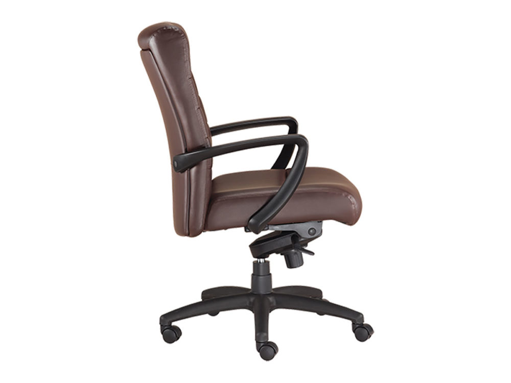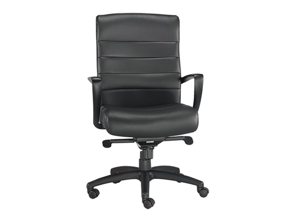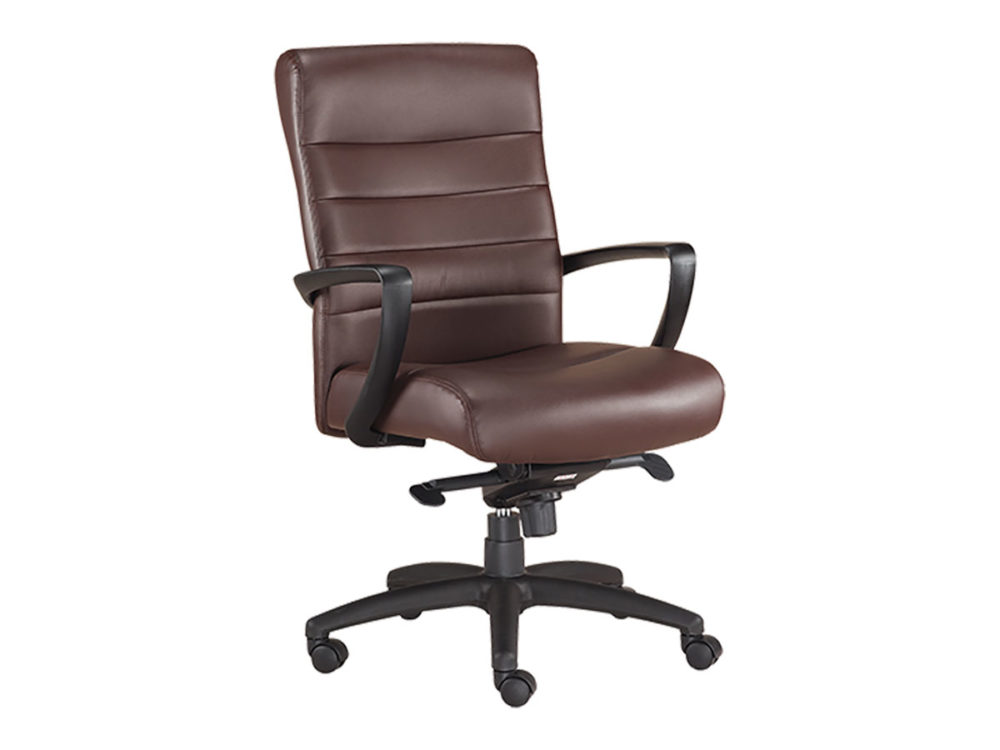 For comfort, durability, and minimalist style, the Manchester features oversized molded foam cushions in black or brown leather with fine-tailored stitching. The chair offers padded armrests, waterfall seat with pneumatic height adjustment, kneetilt mechanism, tilt tension control and steel substructure for enhanced strength.