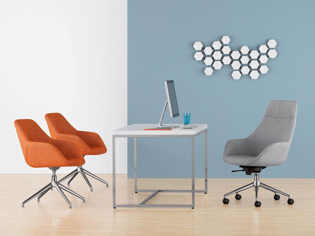 Characterized by a fluid, contemporary aesthetic, Melina is the ideal companion for interiors that extend beyond the traditional to more modern corporate settings. Remarkably comfortable, Melina offers endless versatility with multiple wood and metal base styles – design elements shared with its lounge counterparts to ensure seamless integration throughout spaces.