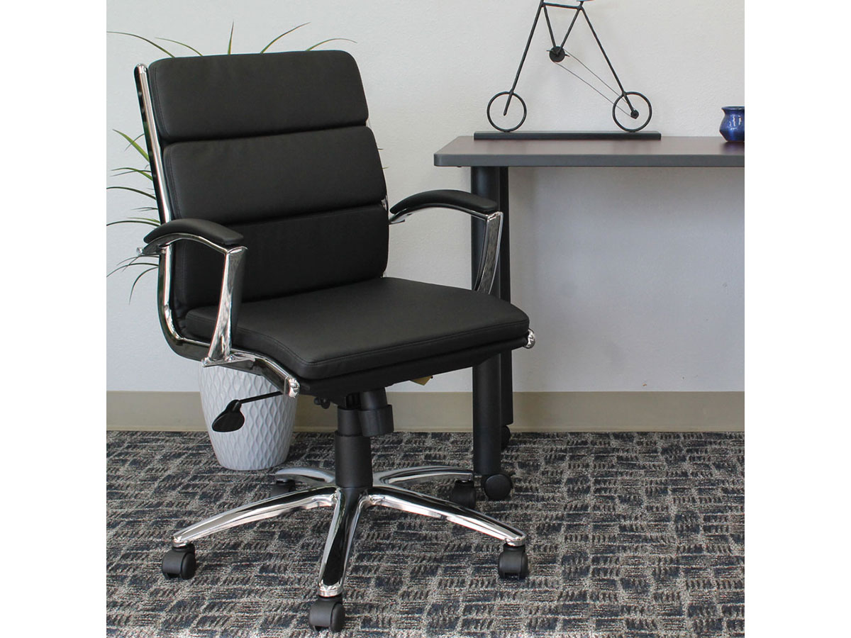 Finding the perfect office chair to rest your back as you work hard to stay on top of your day’s work often becomes impossible. However, it doesn’t have to be this way; all you have to do is invest in this executive mid back chair. Soothing and relaxing, with a soft seat in your choice of two upholstery color options, and with sturdy arms to rest your hands on, this mid back chair has a variety of features to offer. This executive mid back chair is designed by expert craftsmen and, as such, this relaxing chair also offers attention grabbing aesthetics. Adding beauty to comfort, this chair has all the exciting features that an executive mid back chair should offer.