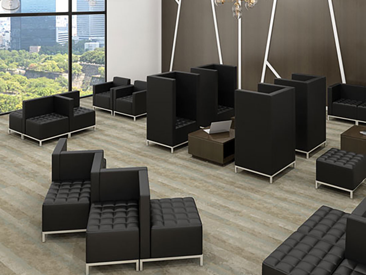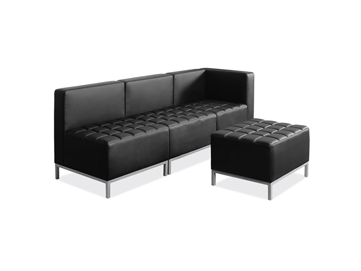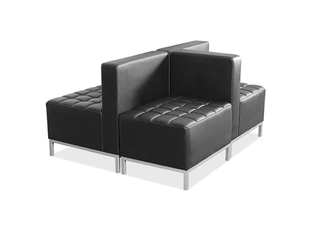 With Millennial Collection reception furniture, you and your office visitors will be pleasantly surprised to discover just how comfortable this black faux leather upholstered, tufted cushion seating can feel. The silver accent base completes the look by adding a contemporary feel.