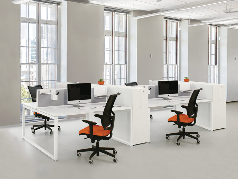 Modern offices are predominantly open-plan which makes it increasingly difficult to protect employees from the negative factors that affect their emotional well-being. Provide them some privacy and help them maintain their concentration. All types of desks come with dividers that are most suitable for them. There are three designs to choose from to suit your needs: upholstered (frameless or with a metal frame) or made of acrylic glass. There are also two options of partitions available: melamine partitions and acrylic glass partitions.