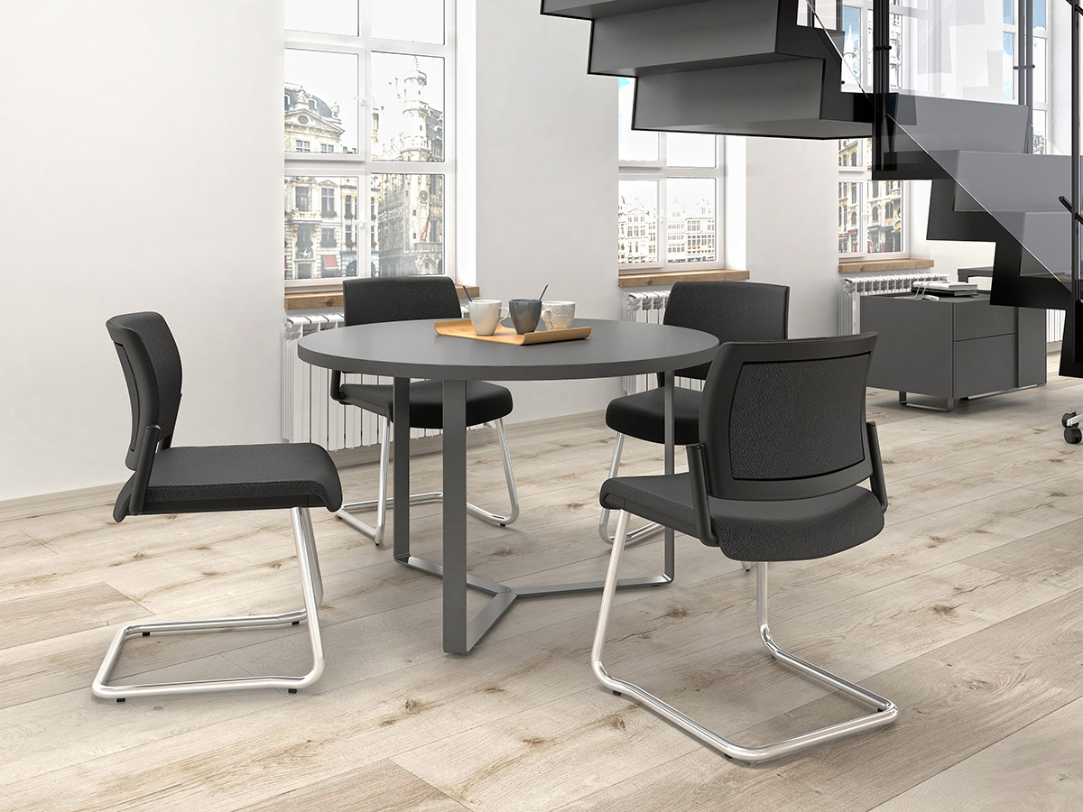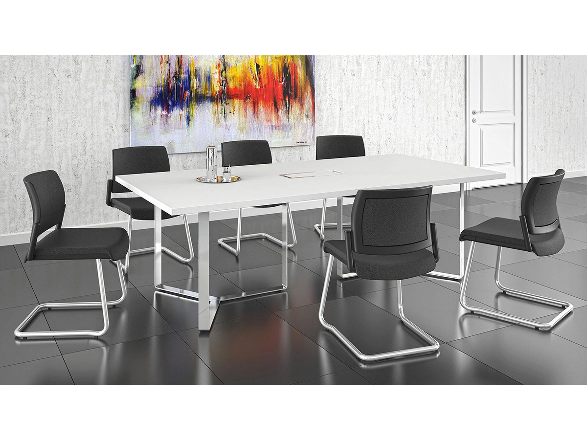 Meeting tables featuring modern and laconic design from the PLANA executive furniture collection are a perfect choice for higher-class conference rooms and meeting areas. Find a meeting table best suited to your office space: whether it is a square shaped table seating 8 or 14 people or a round table seating up to 3 people.