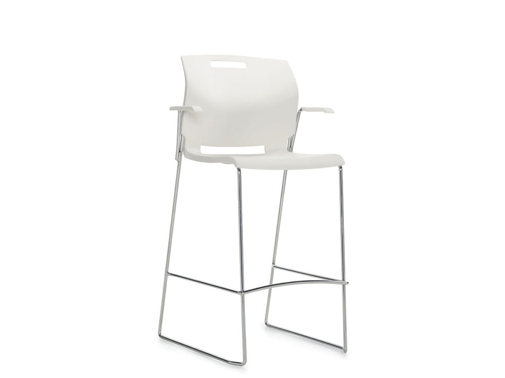 • Polypropylene models can be stacked on dolly 34 high, while upholstered models can be stacked 15 high (standard 80″ door frame). Stools are stackable up to 8 high on the floor but not stackable on dolly.