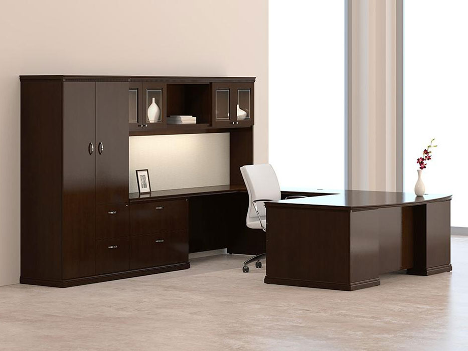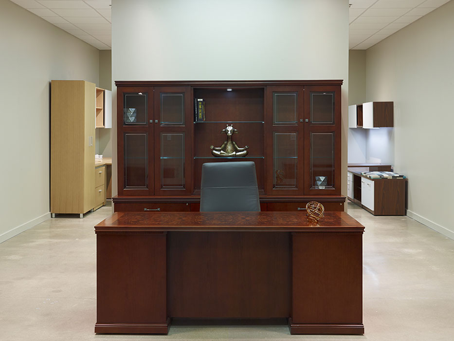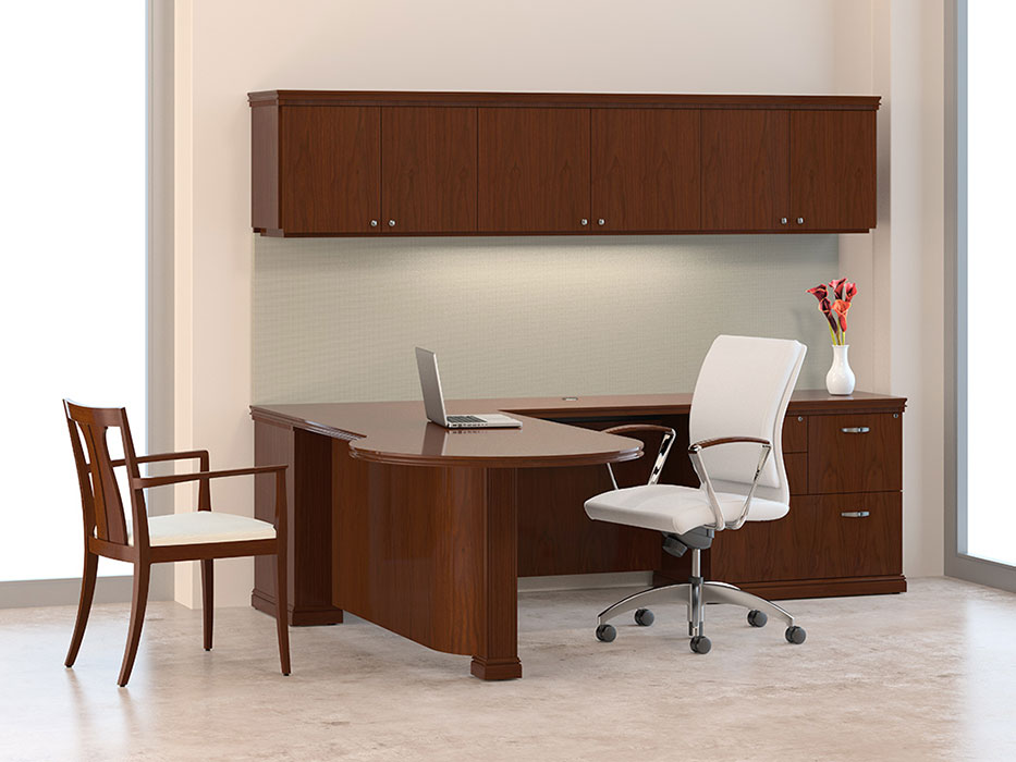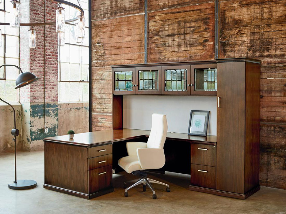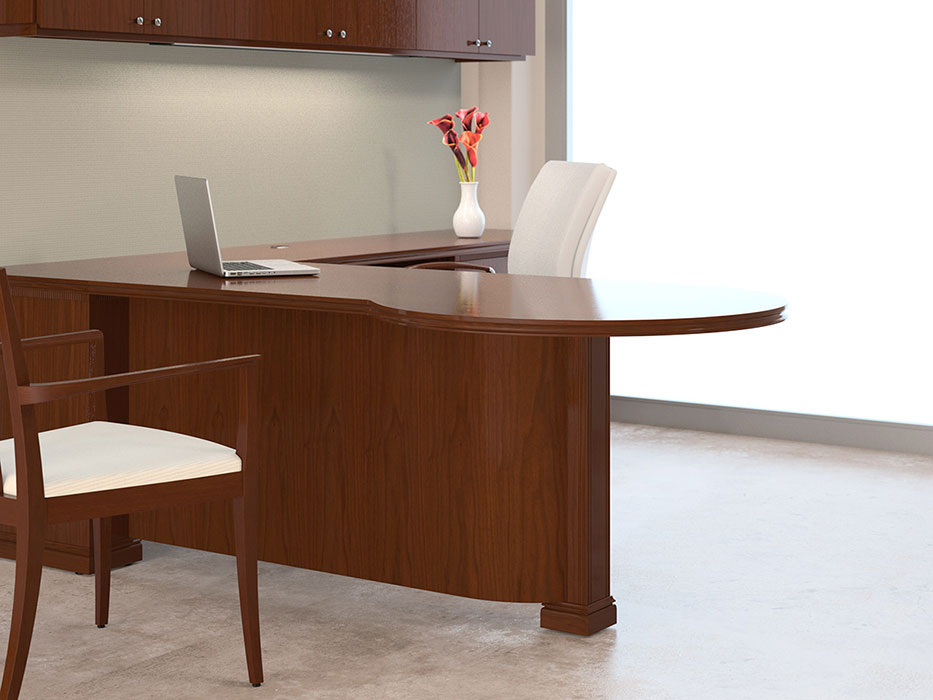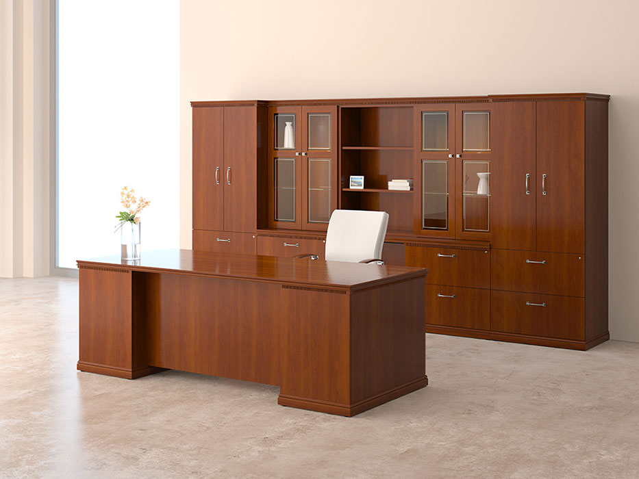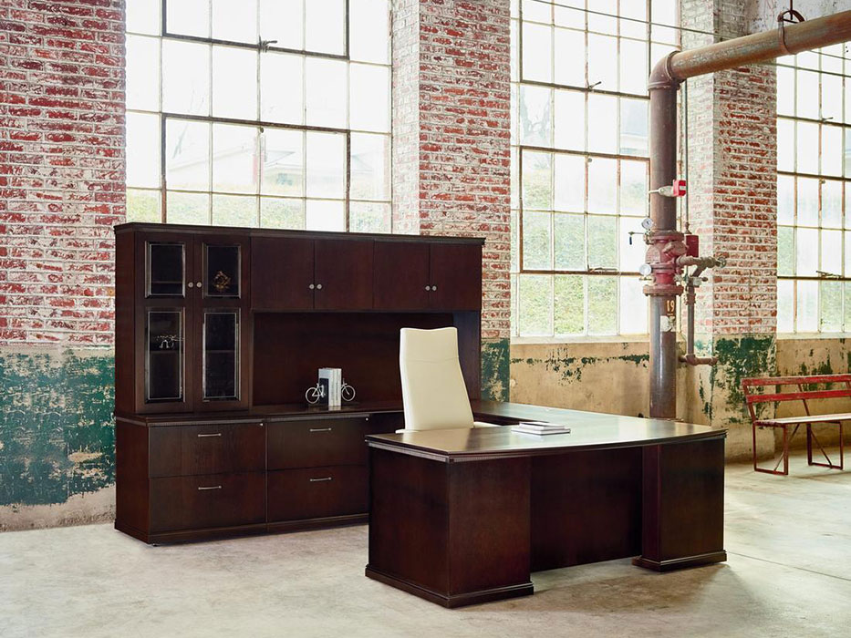 Prado takes its name and its timeless look from the Nacional del Prado, an art gallery in Madrid. Neoclassical dentil molding, beveled glass, and solid hardwood details are reminiscent of the Spanish Royal Collection, bringing luxury and functionality to workspaces. Modern conveniences, such as easy-open panels to hide power and cables, and curvilinear shapes are available to make this collection a new classic.