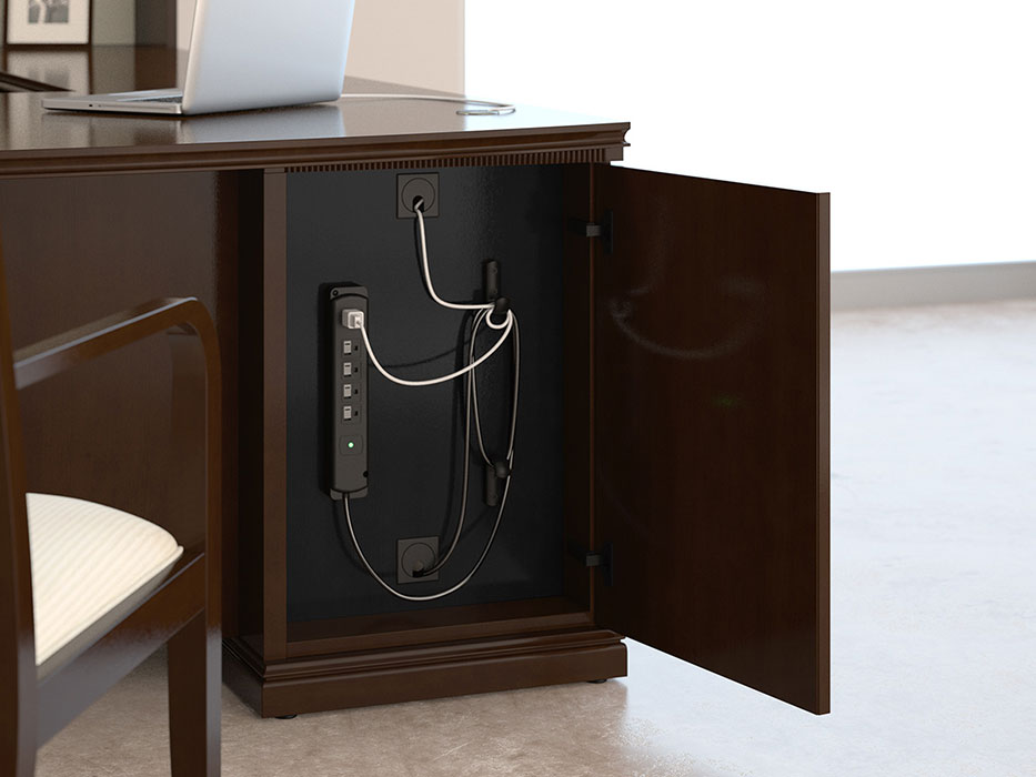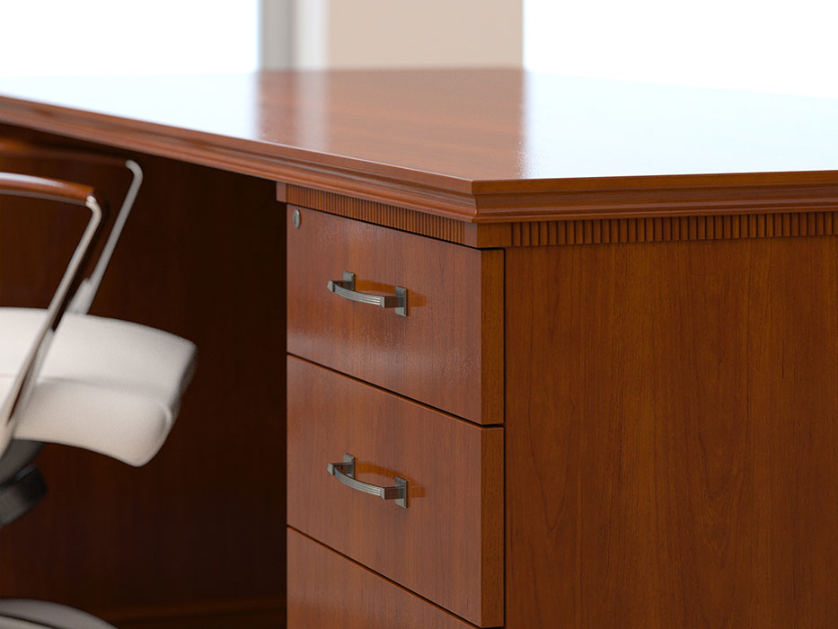 Prado takes its name and its timeless look from the Nacional del Prado, an art gallery in Madrid. Neoclassical dentil molding, beveled glass, and solid hardwood details are reminiscent of the Spanish Royal Collection, bringing luxury and functionality to workspaces. Modern conveniences, such as easy-open panels to hide power and cables, and curvilinear shapes are available to make this collection a new classic.Features & Benefits