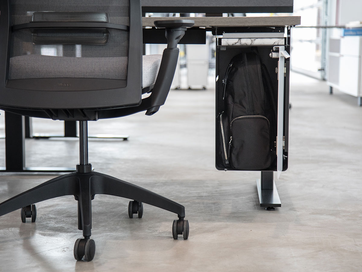 A single sheet of steel wraps the storage unit to provide a clean, soft 360° aesthetic that complements the modern work environment.Maximized Footprint