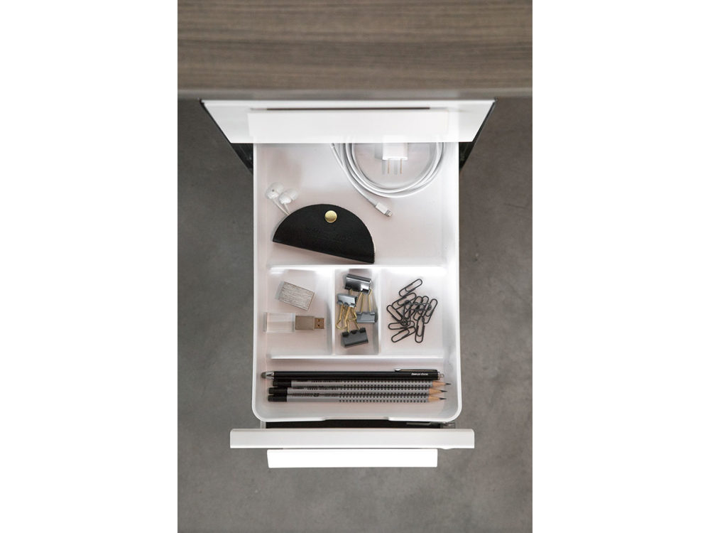 Radii enhances the user experience through intuitive options and seamless integration. Five simple work tools allow for customization where and how users store personal items and paper.Inspired Simplicity