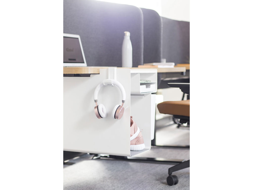As the shift towards digital documentation becomes more prevalent, the space that’s freed up inside storage units is occupied with workers’ personal belongings. Radii addresses the need to stow, rather than store, in a compact, space-efficient design that allows people to stay productive and connected to their work.