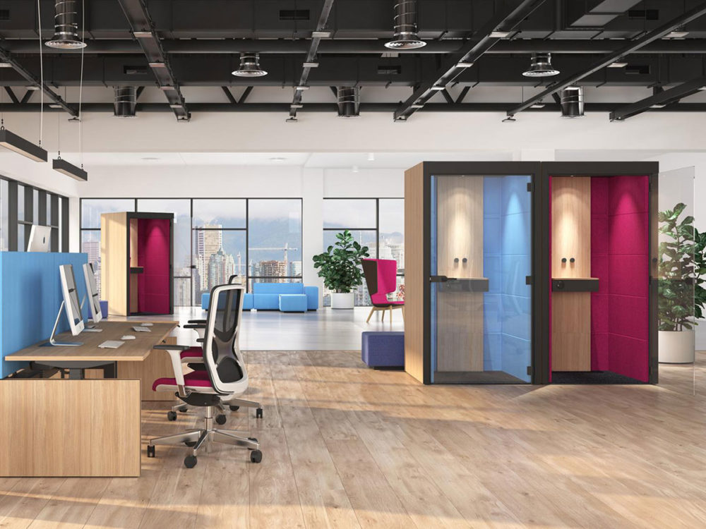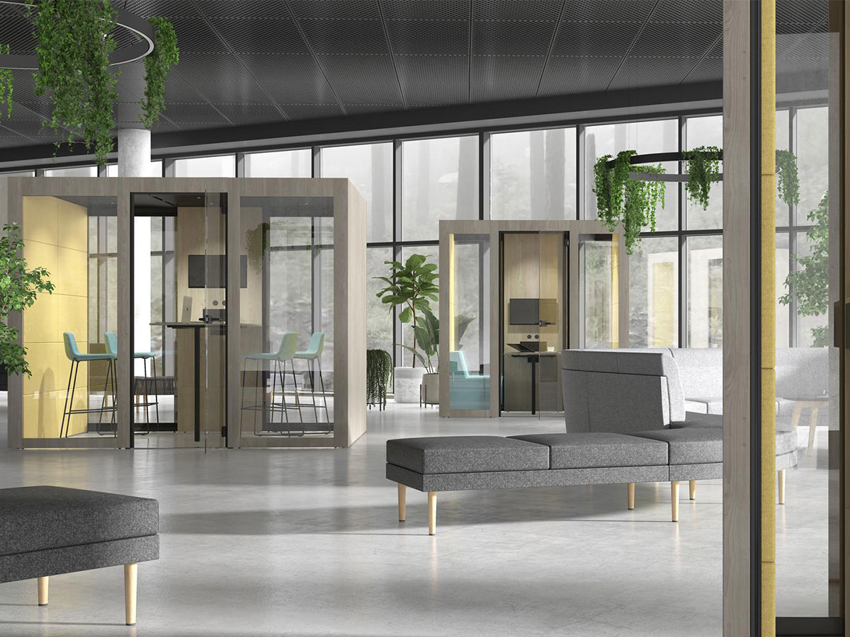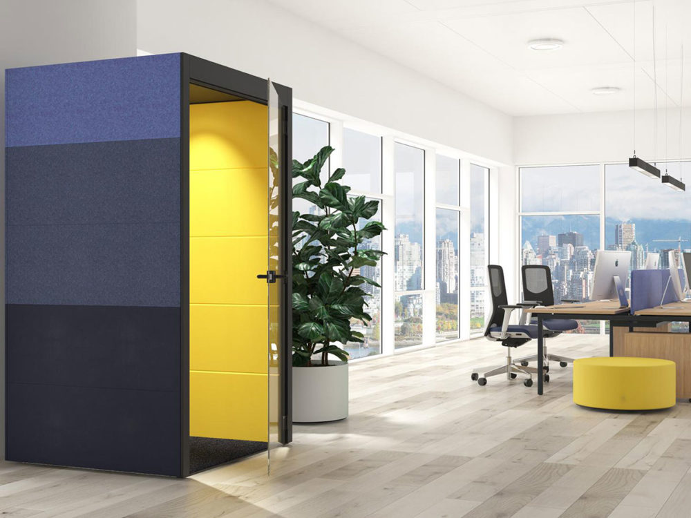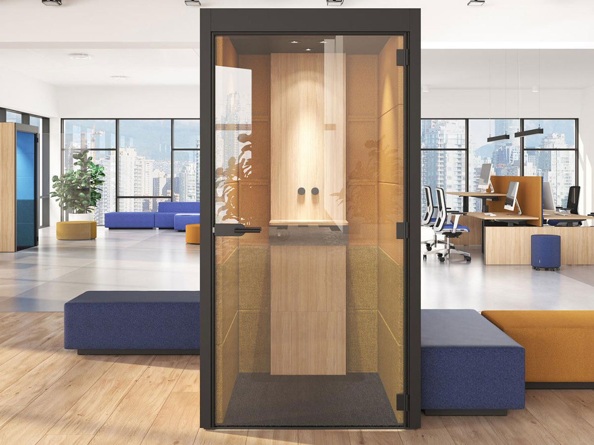 Open plan offices mean more space, more light, more freedom, and… more noise in the work environment. Every day, employees face increasing challenges in finding a quiet place to hold meetings, have phone conversations or simply focus on individual work. “A room within a room” is a simple way to keep noise distractions at bay and boost employee productivity.