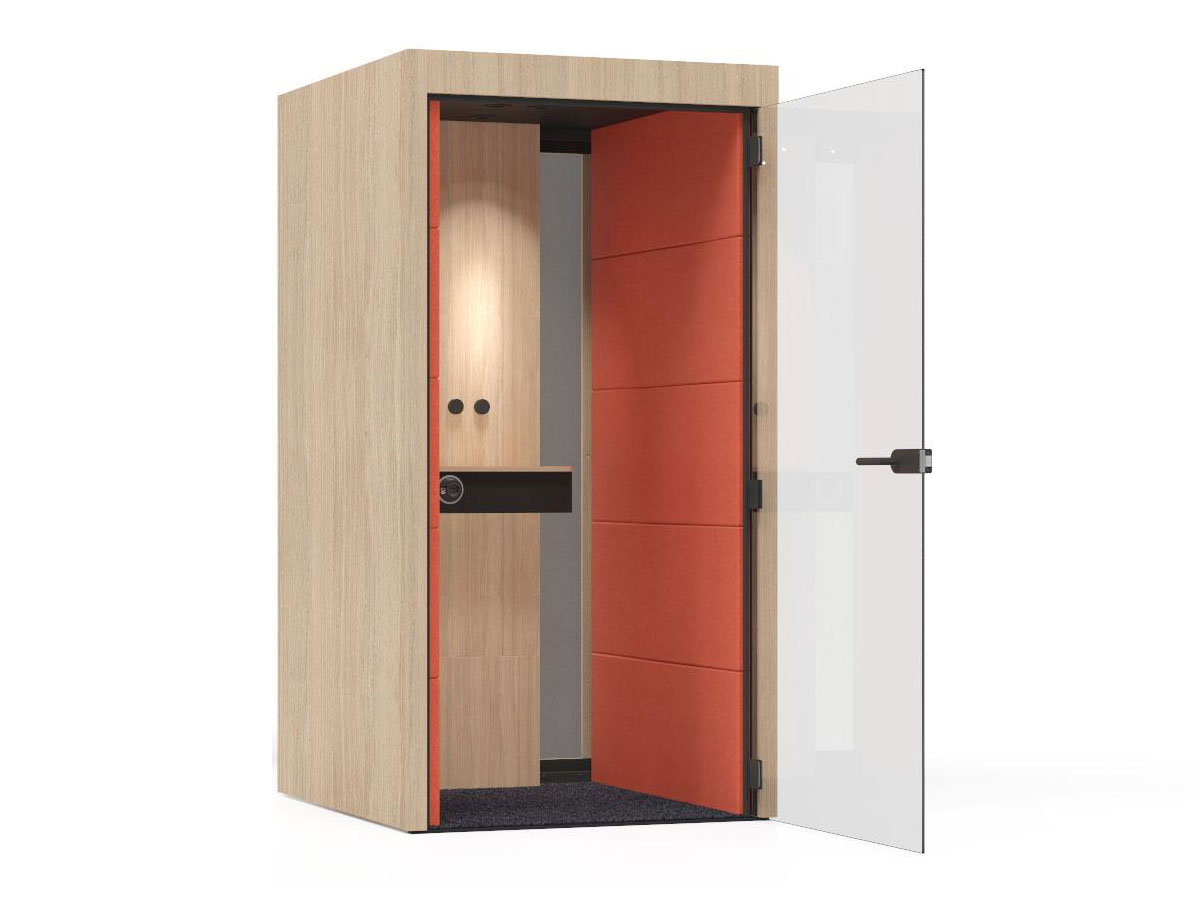 With its special design, the SILENT ROOM acoustic pod ensures the right level of sound absorption which means that it blocks both incoming and outgoing noise. The internal acoustic walls have excellent sound absorption properties which help eliminate reverberation in the room allowing the users to enjoy a cosy and pleasant atmosphere. With their low operating noise, the fans in the acoustic pod are just as quiet as the sound of leaves rustling. Thus, they will not cause any distractions to the user while performing high-concentration tasks. The models with upholstered exterior panels are also designed to absorb noise, creating a positive effect on the general acoustics of the entire office spaceDo not limit yourself and feel free
