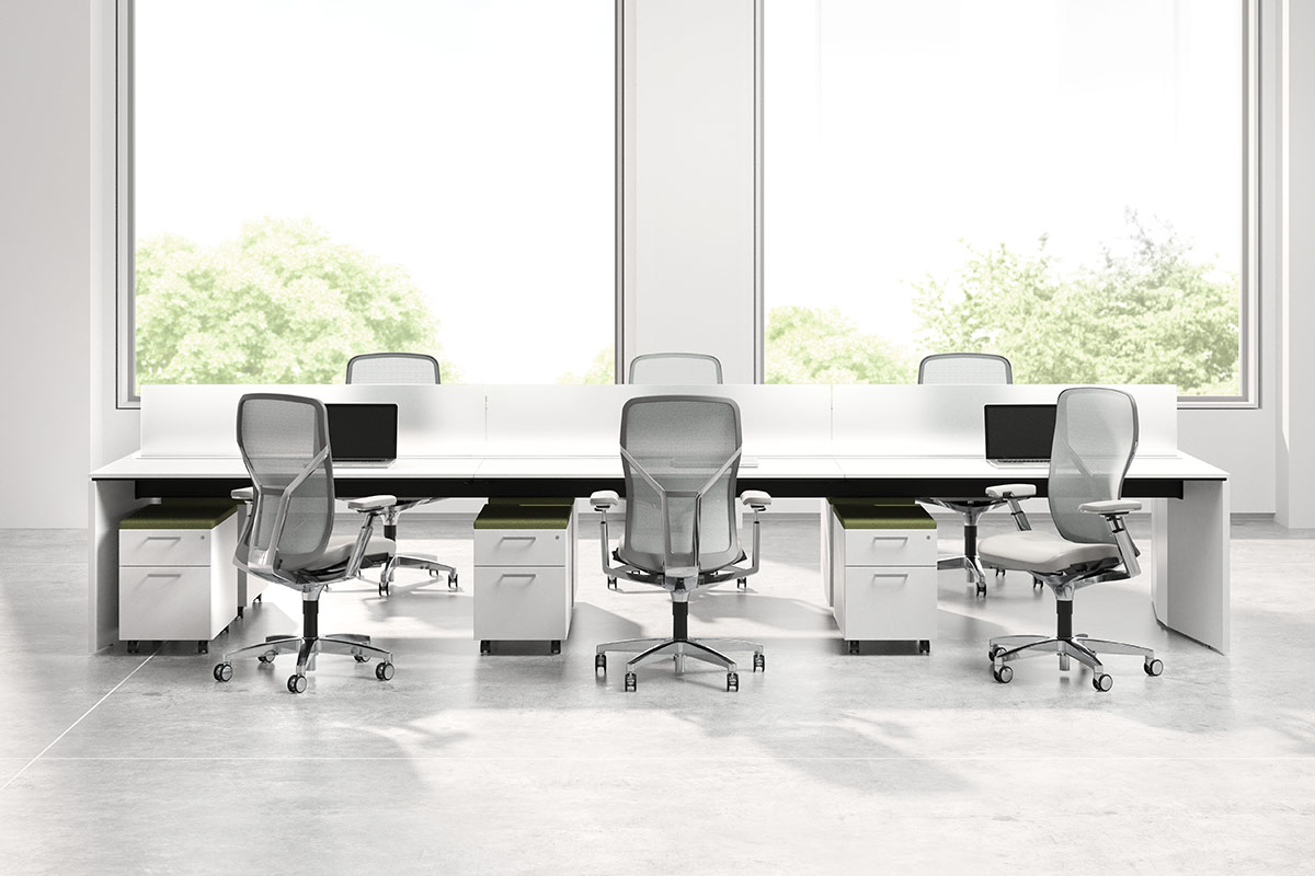 Say goodbye to endless drywall. Our architectural walls, available in a variety of styles, colors, and materials, provide flexible options that allow you to reconfigure your office space as needed. Walls can be configured to let in natural light, provide whiteboard space, and to meet your acoustic requirements.