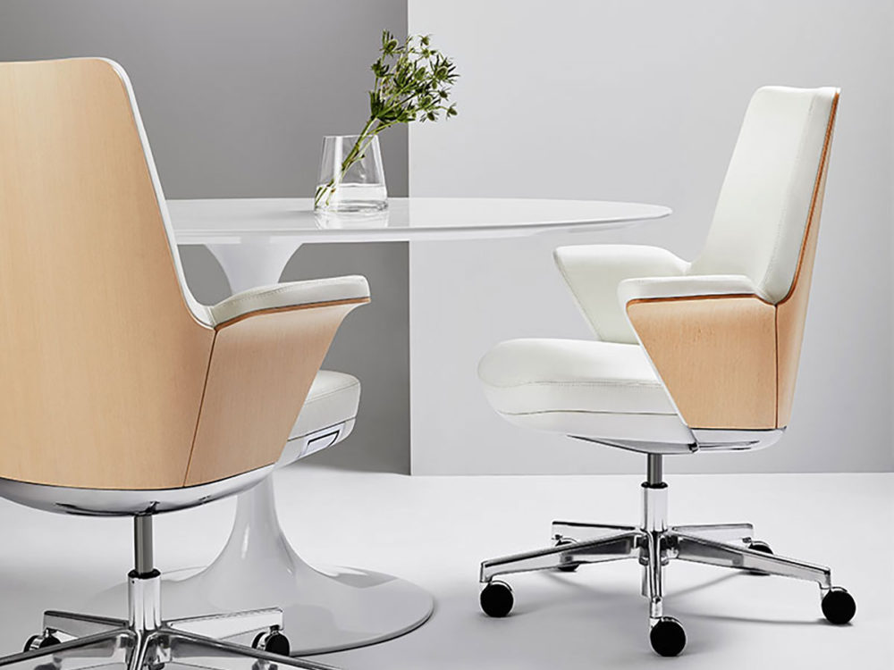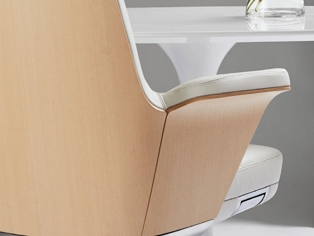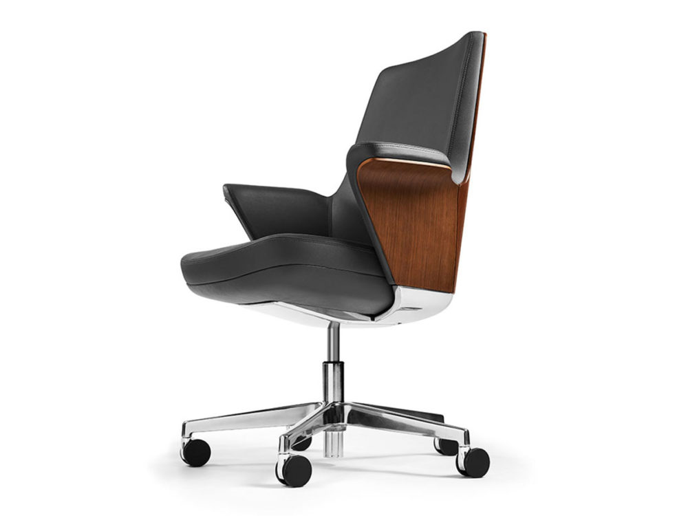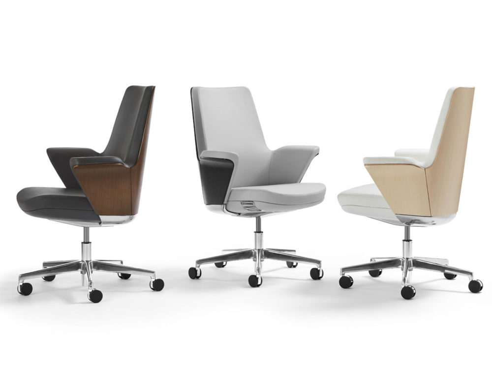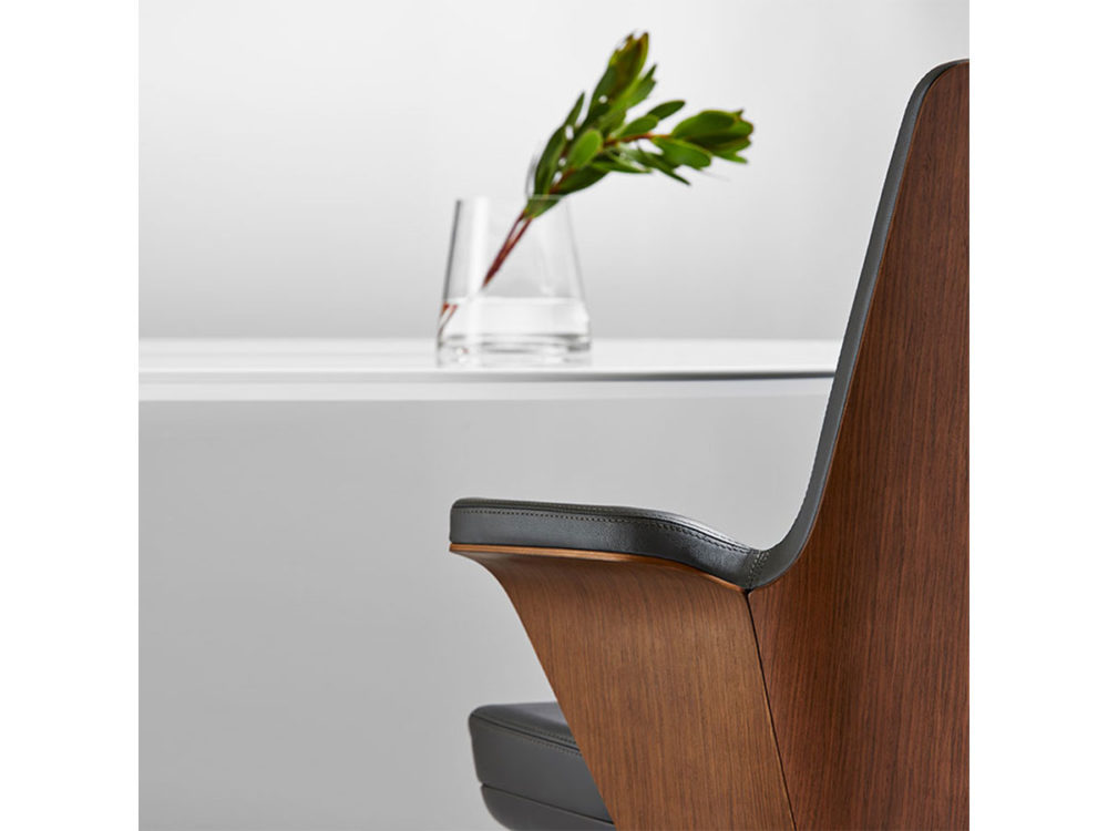 Summa’s sleek contours extenuate the chair’s thoughtful design. Utilizing only one simple yet discreet height adjustment lever, Summa eliminates large knobs for a perfectly contoured and timeless aesthetic. Between eight leather finishes and two back options, Summa can be customized to match any palette in any environment.