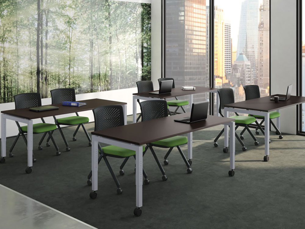 This typical includes four rectangular table tops with adjustable height legs, also includes optional casters. This makes them a great choice for a business or an educational facility. When you need to transform an open space into a meeting space, a conference room, a training room, or perhaps a debate area for a school function, you’ll find this office furniture will easily meet all of your needs. For maximum customization, the table tops in this typical are offered in eight great finish options, and the adjustable height legs are available in two finish options.