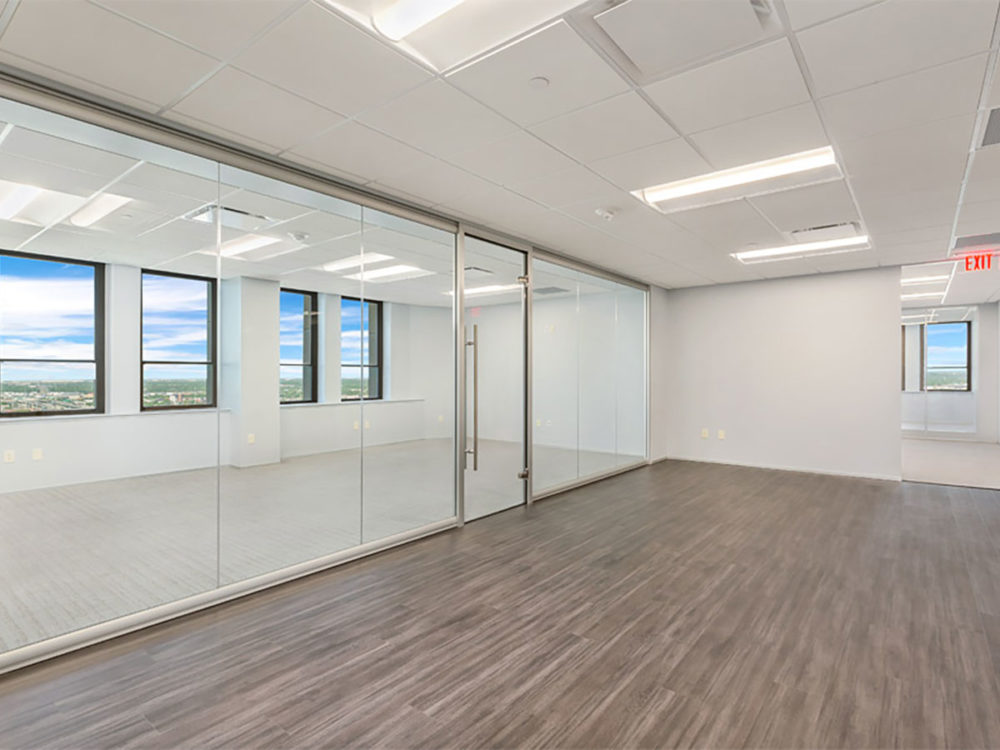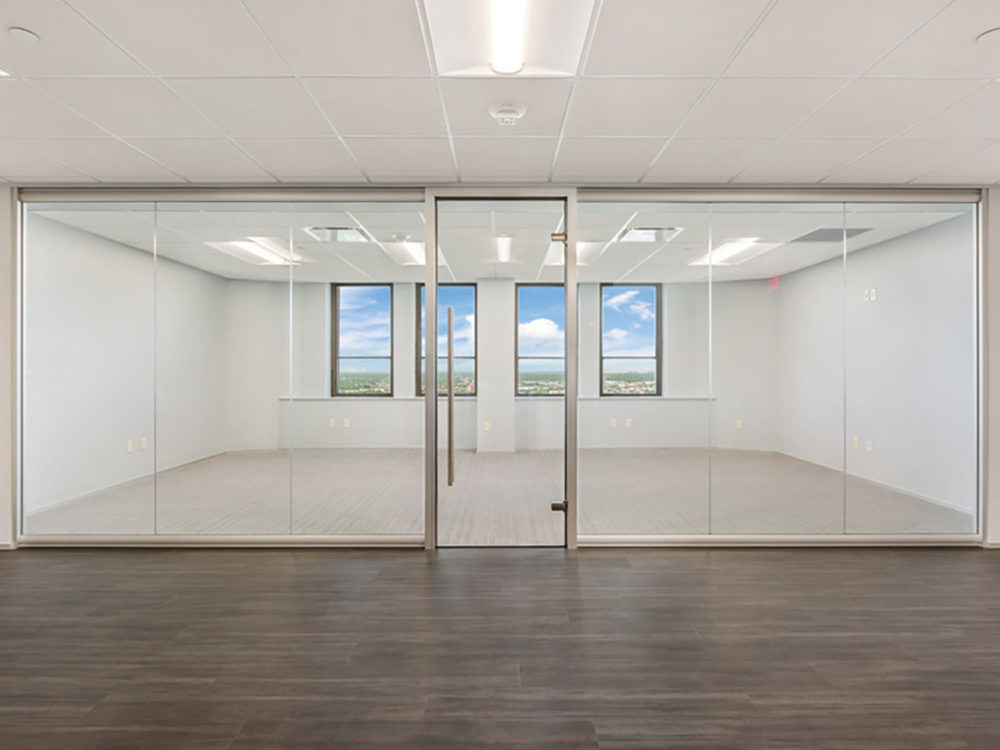 The View glass office wall system combines simplicity with flexibility making moving the wall configuration an easy task. The minimally seamed glass front solution offers elegant frameless glass sliding doors as well as framed aluminum or wood doors. The View office wall Series can be combined with our most comprehensive and Flex Office Wall Series. Combining both office wall systems can deliver the most scalable front and side wall solution on the market today.
